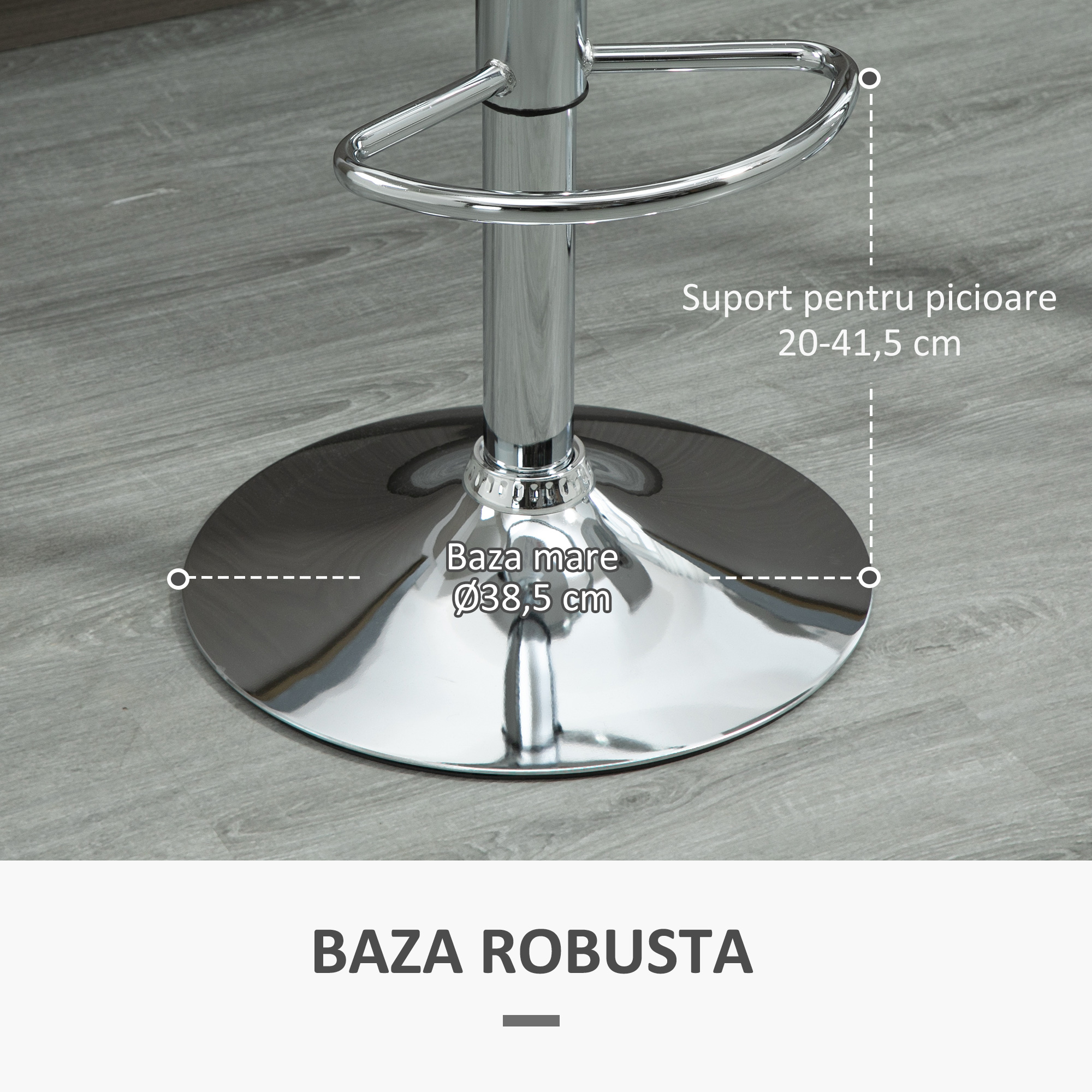 Aceste scaune de bar [BRAND NAME] ofera confort tip lounge si versatilitate in spatiul de dining sau bucatarie. Spatarele ergonomice si suporturile pentru picioare asigura sustinere executata in stil, iar mecanismul pivotant si reglabil pe inaltime se adapteaza nevoilor individuale. Tapiteria moderna si baza robusta confera stabilitate si aspect sofisticat. Potrivite pentru insule de bucatarie, baruri sau spatii mici ce necesita stil si confort.