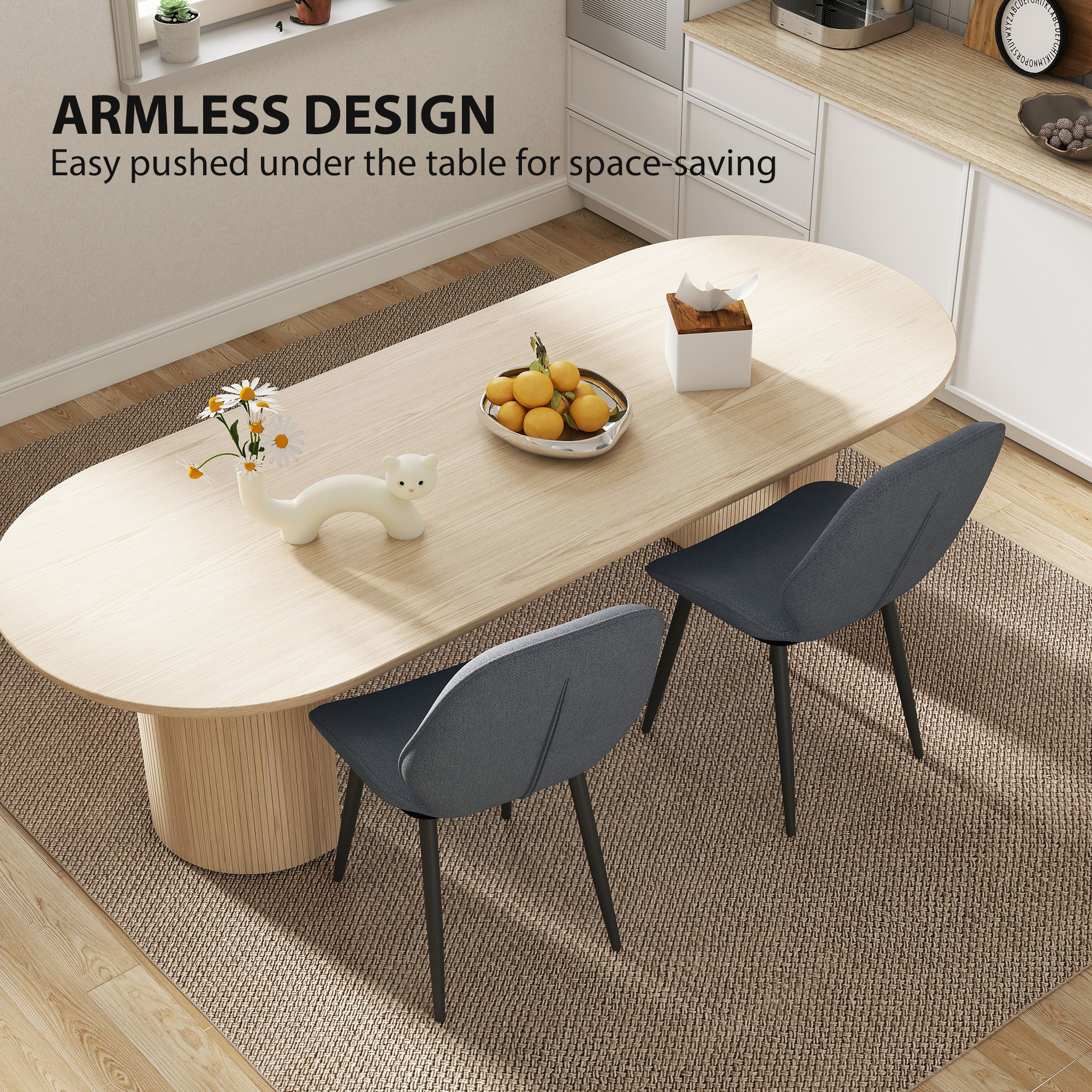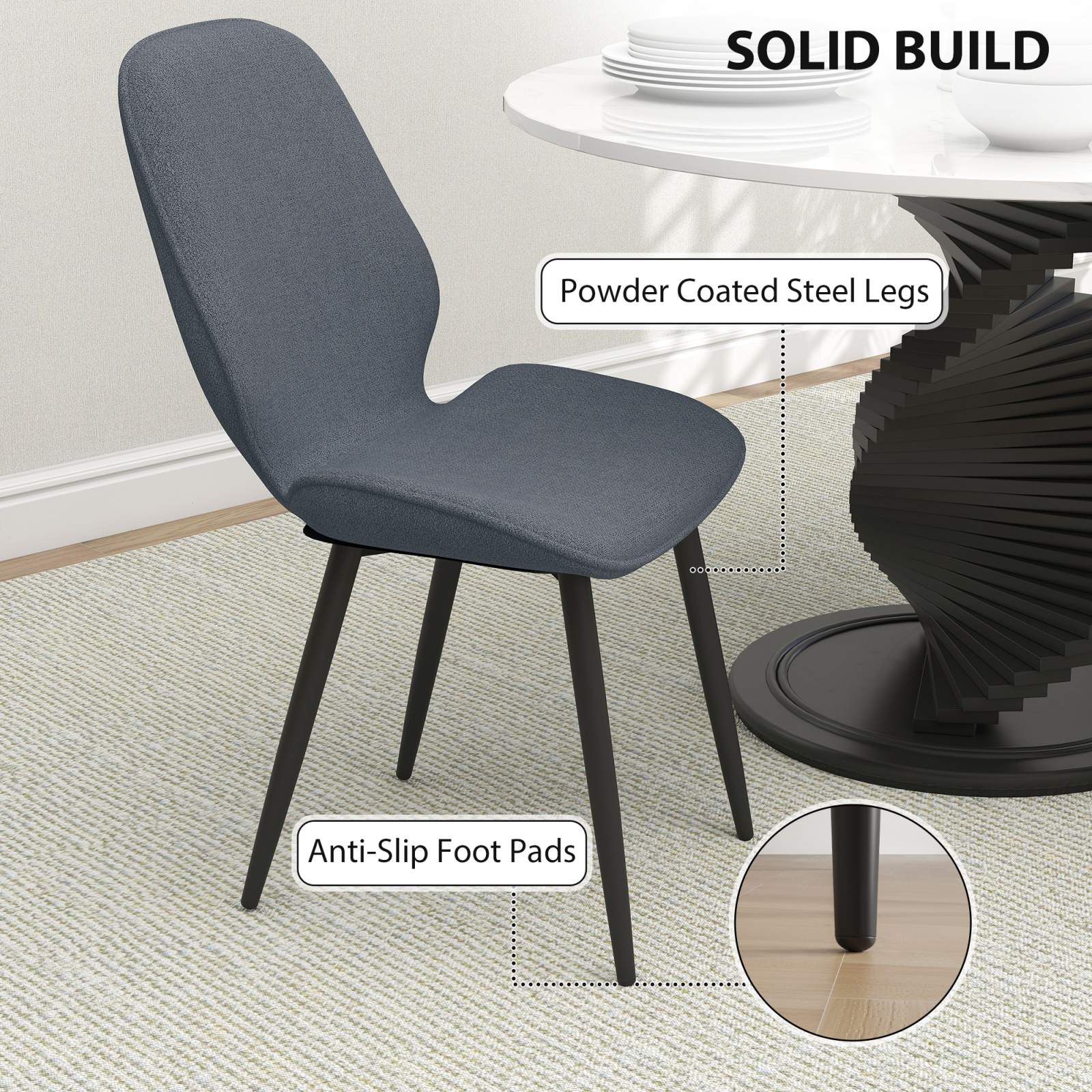Transforma aspectul spatiului tau de luat masa sau al sufrageriei cu setul nostru de scaune de luat masa [BRAND NAME]. Cele 2 scaune se lauda cu un material textil elegant de tip in care asigura confortul corect in timpul sedintelor prelungite, in timp ce spatarul elegant curbat sustine postura naturala a corpului. Potrivite pentru orice mediu, aceste scaune de bucatarie ofera un mix de functionalitate si design chic.