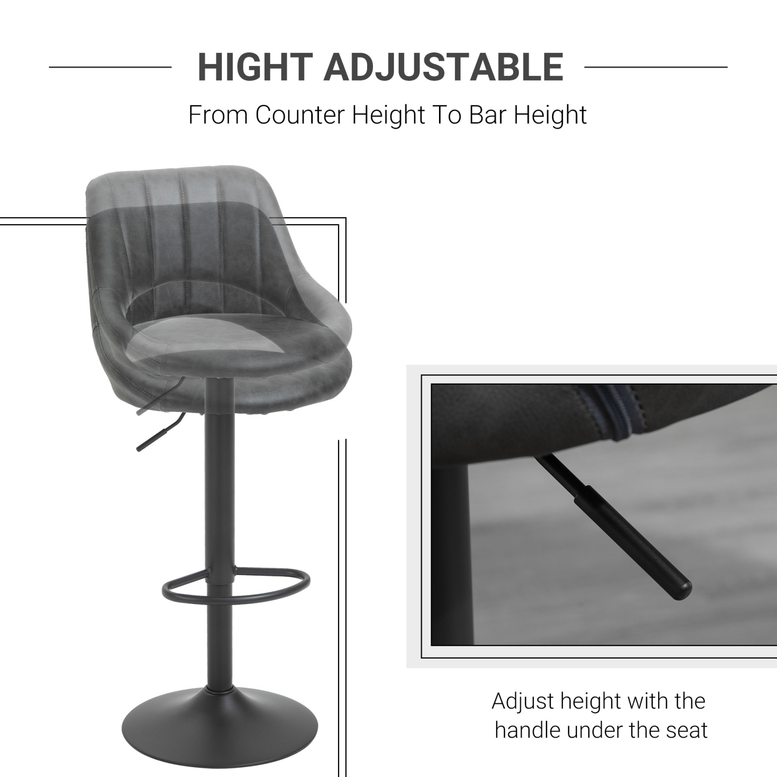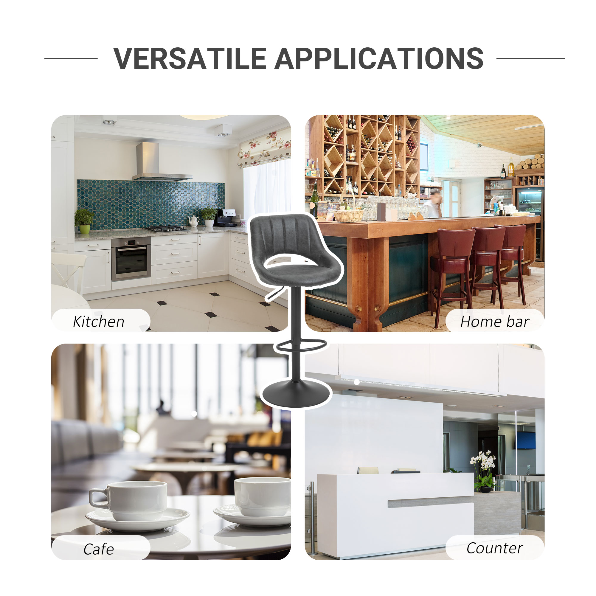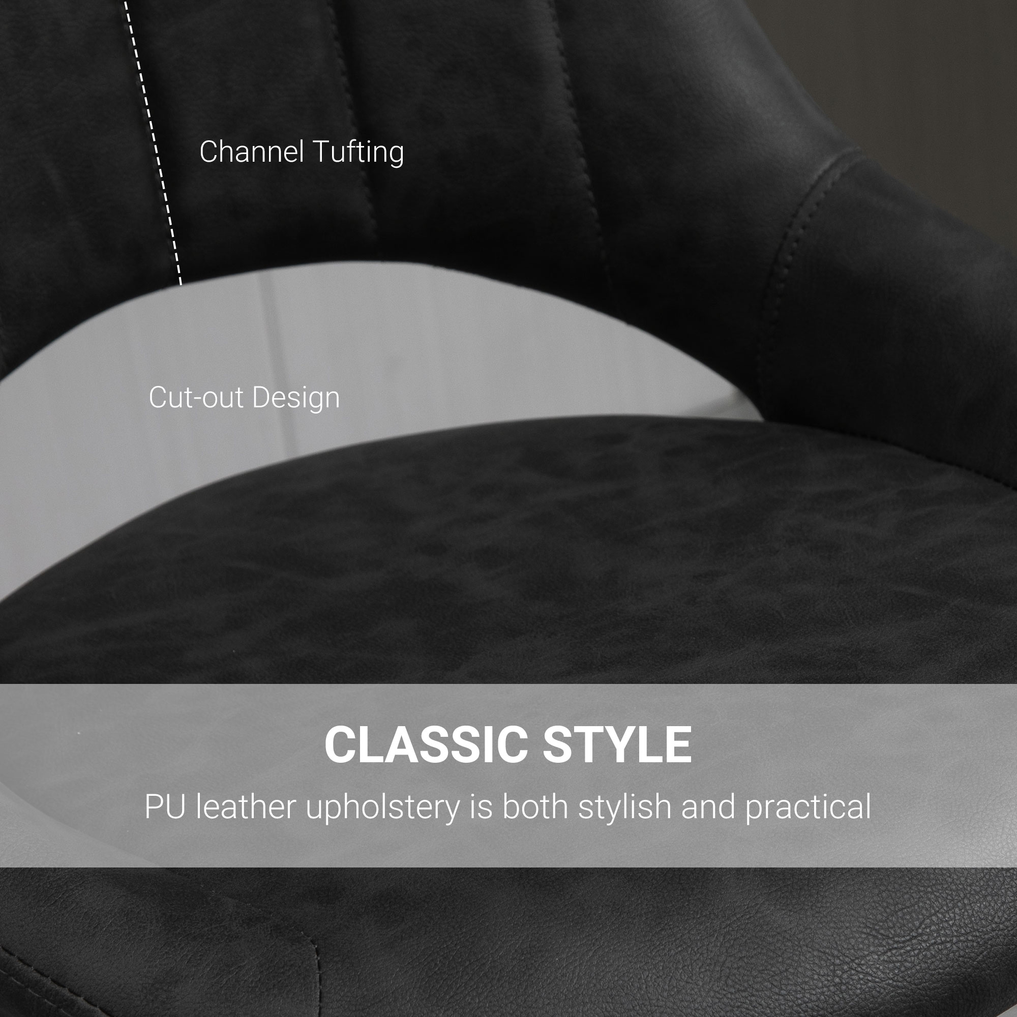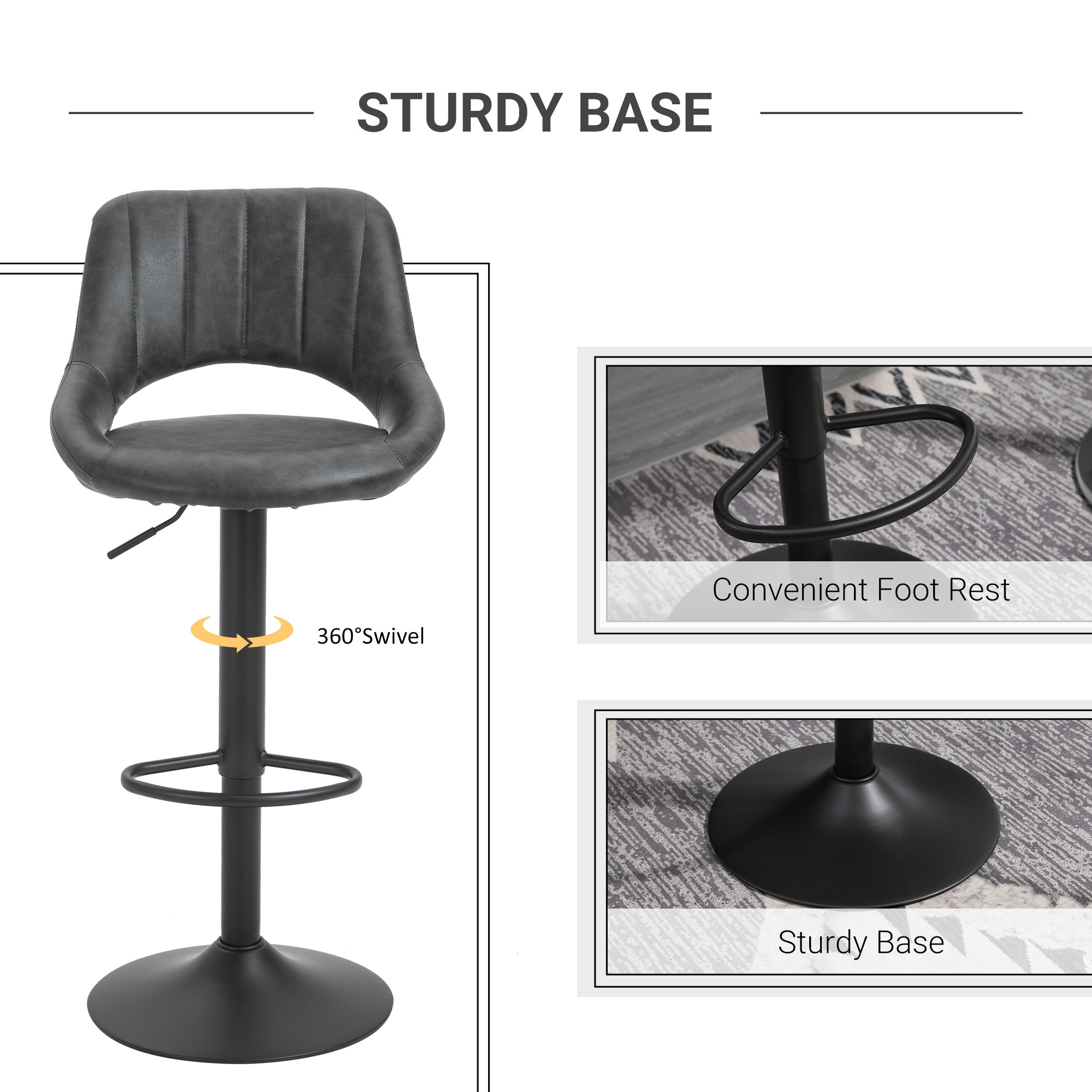 Scaunele de bar [BRAND NAME] confera un aspect sofisticat si atemporal oricarui spatiu. Invelisul din piele sintetica de PU confera eleganta, iar umplutura face sederea confortabila. Aceste scaune cu spatar curbat ofera o sustinere optima, pentru a va relaxa in timp ce sorbiti ceva de baut. Baza mare si rotunda face ca scaunele sa fie stabile si sigure de folosit oriunde doriti.