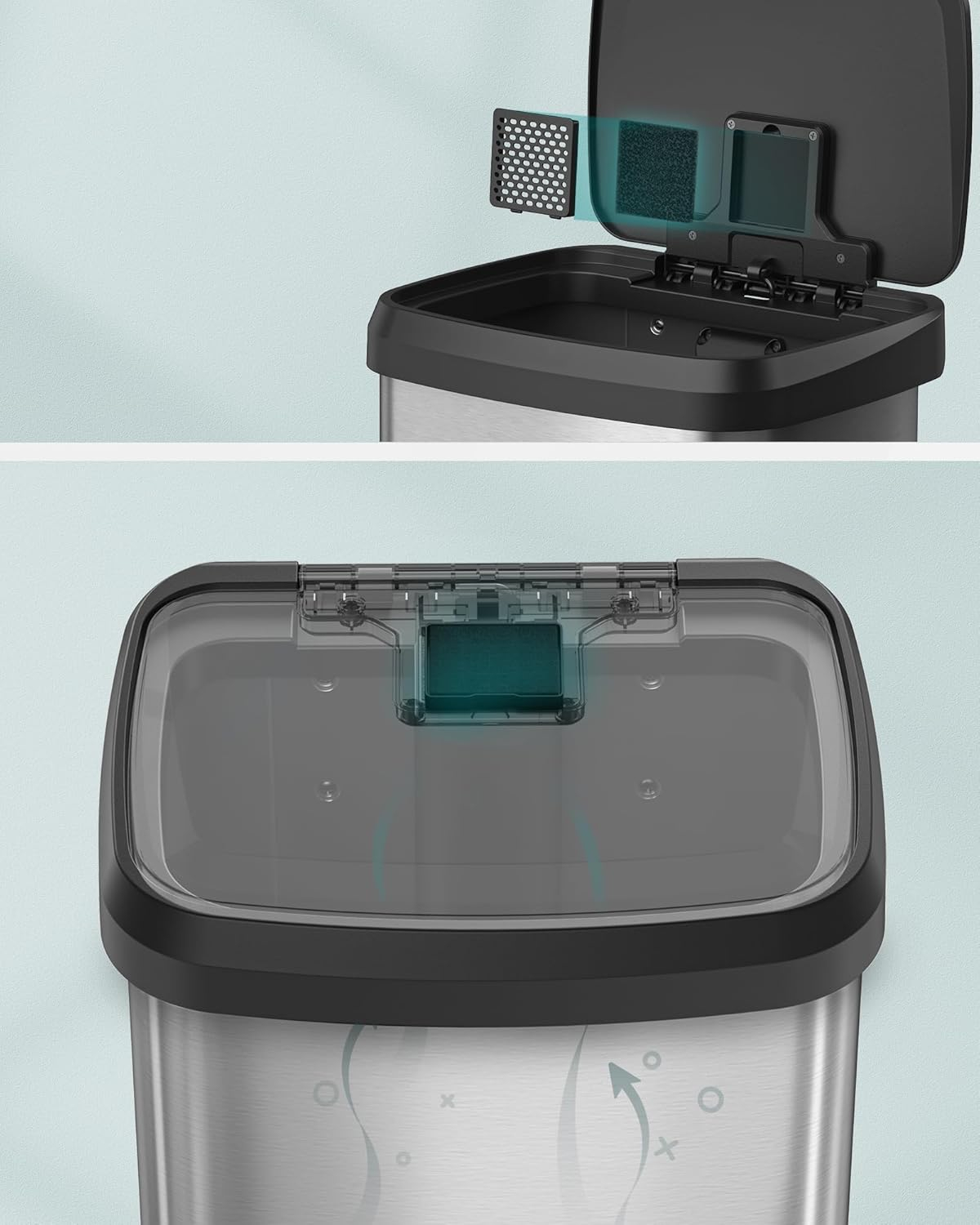 Cos de gunoi din inox, 68 L cu pedala, capac soft close, filtru de carbon pentru neutralizarea mirosurilor, argintiu