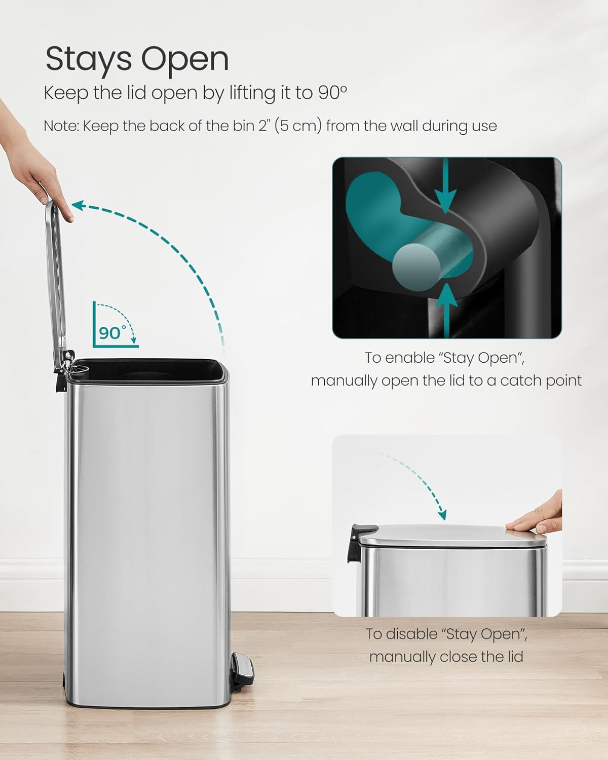 Cosul de gunoi SONGMICS de 30L este o alegere practica si eleganta pentru orice bucatarie. Designul compact si modern permite economisirea spatiului, iar constructia din inox ofera durabilitate si un aspect premium. Sistemul de inchidere lenta si deschiderea cu pedala asigura confort si igiena in utilizarea zilnica.