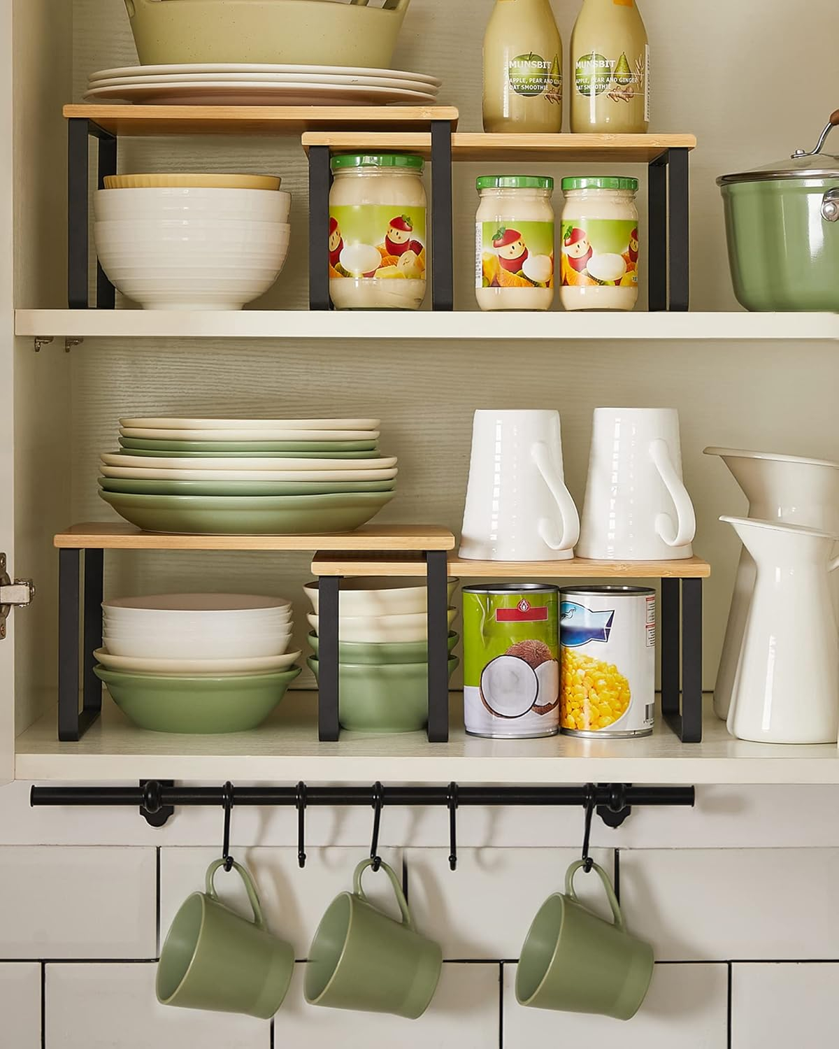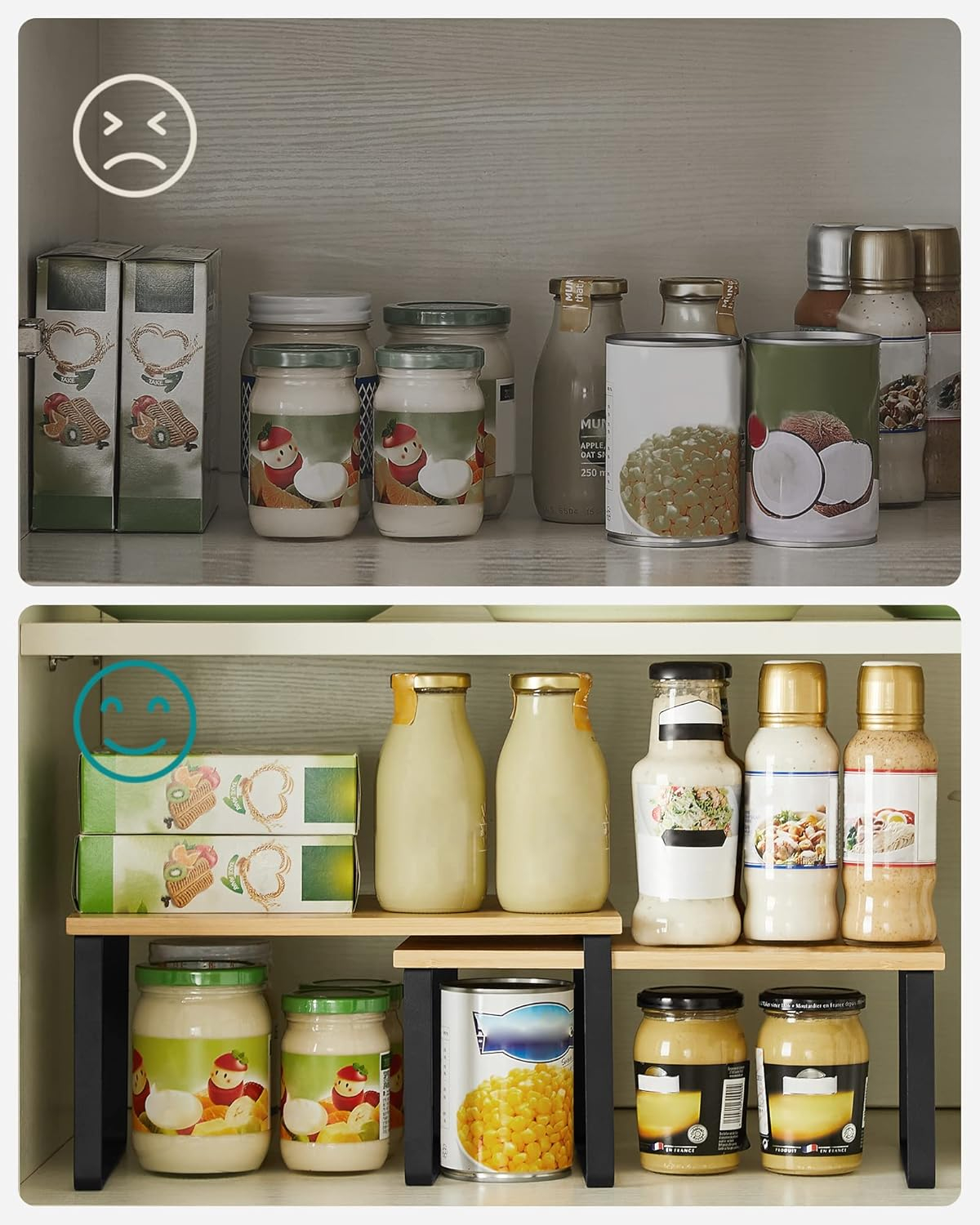 Organizatorul SONGMICS pentru bucatarie este solutia ideala pentru maximizarea spatiului pe blat sau in dulap. Designul modular permite configurarea in functie de nevoi, fie suprapuse, alaturate sau separate. Materialele rezistente si aspectul modern il fac potrivit pentru orice bucatarie organizata si eficienta.
