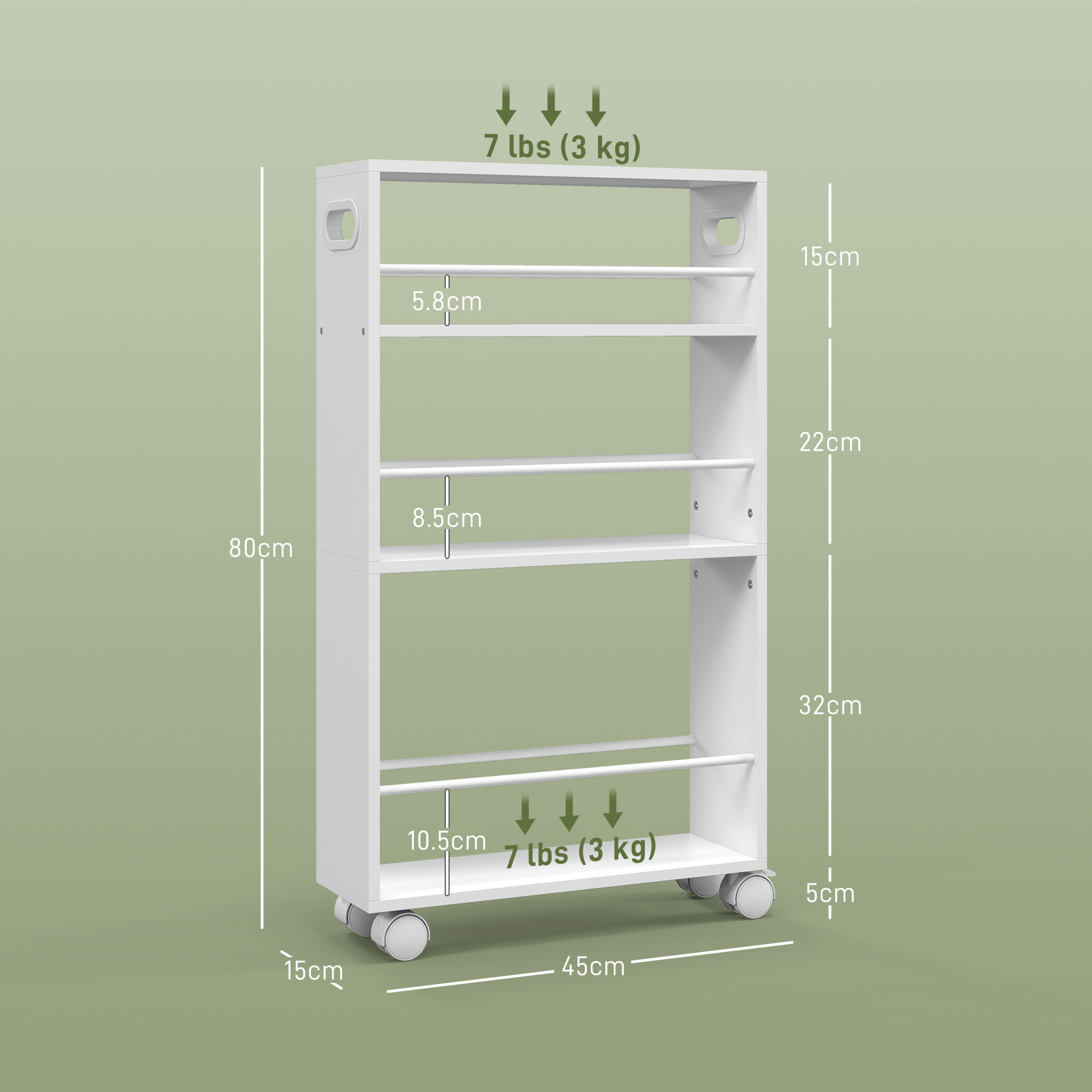 Troler Salvaspatiu pentru Bucatarie si Baie cu 3 Niveluri, Bare Laterale si Roti cu Frane, Alb