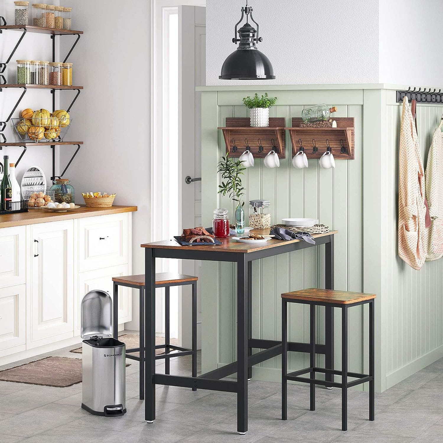 Dimensiuni produs: 40D x 65W x 30H cm Material: PAL, otel Culoare Rustic: Maro&Negru Marca: VASAGLE Dimensiune: 40 x 30 x 65 cm Stil: Industrial Despre acest articol Panoul de particule maro rustic si metalul clasic negru aduc un nou condiment bucatariei sau sufrageriei tale. Oaspetii tai vor adora gustul industrial al acestor doua scaune.Aceste scaune din PAL premium si otel robust au rezistenta (incarcare de 120 kg fiecare) pentru a va servi cafeaua si croissantele de dimineata ani de zile. Aceste taburete de 40 x 30 x 65 cm aluneca usor sub masa pentru a economisi spatiu.Stati pe aceste taburete cu suport pentru picioare pentru a va calma picioarele dupa o zi lunga de la munca, beti o bautura cu prietenii, jucati-va cu copiii sau mancati pizza cu vecinii in confort.Doar 20 de minute: atat timp iti va lua sa asamblati aceste doua scaune. Acesta adauga farmec, usurinta si confort interiorului tau intr-un timp scurt.