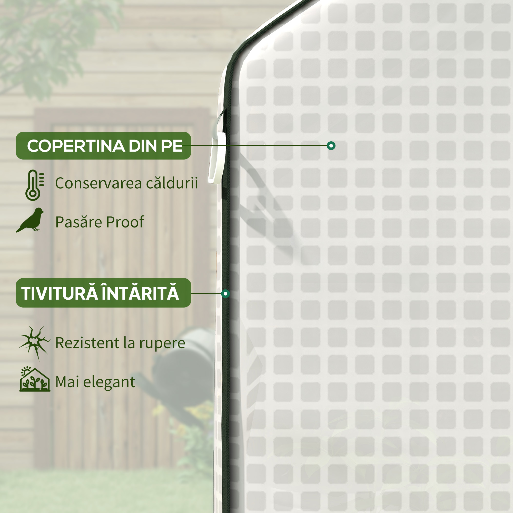 Daca acoperisul serei tale de gradina este deteriorat, nu trebuie sa arunci totul: pentru a economisi, alege acoperisul de rezerva [BRAND NAME], care iti permite sa prelungesti durata de viata a serei! Realizat din PE dublu strat cu plasa interna care il face mai rezistent, folia de protectie are margini extinse care pot fi ingropate pentru a imbunatati stabilitatea serei. Usa rulabila si ferestrele asigura o ventilatie optima in interior.