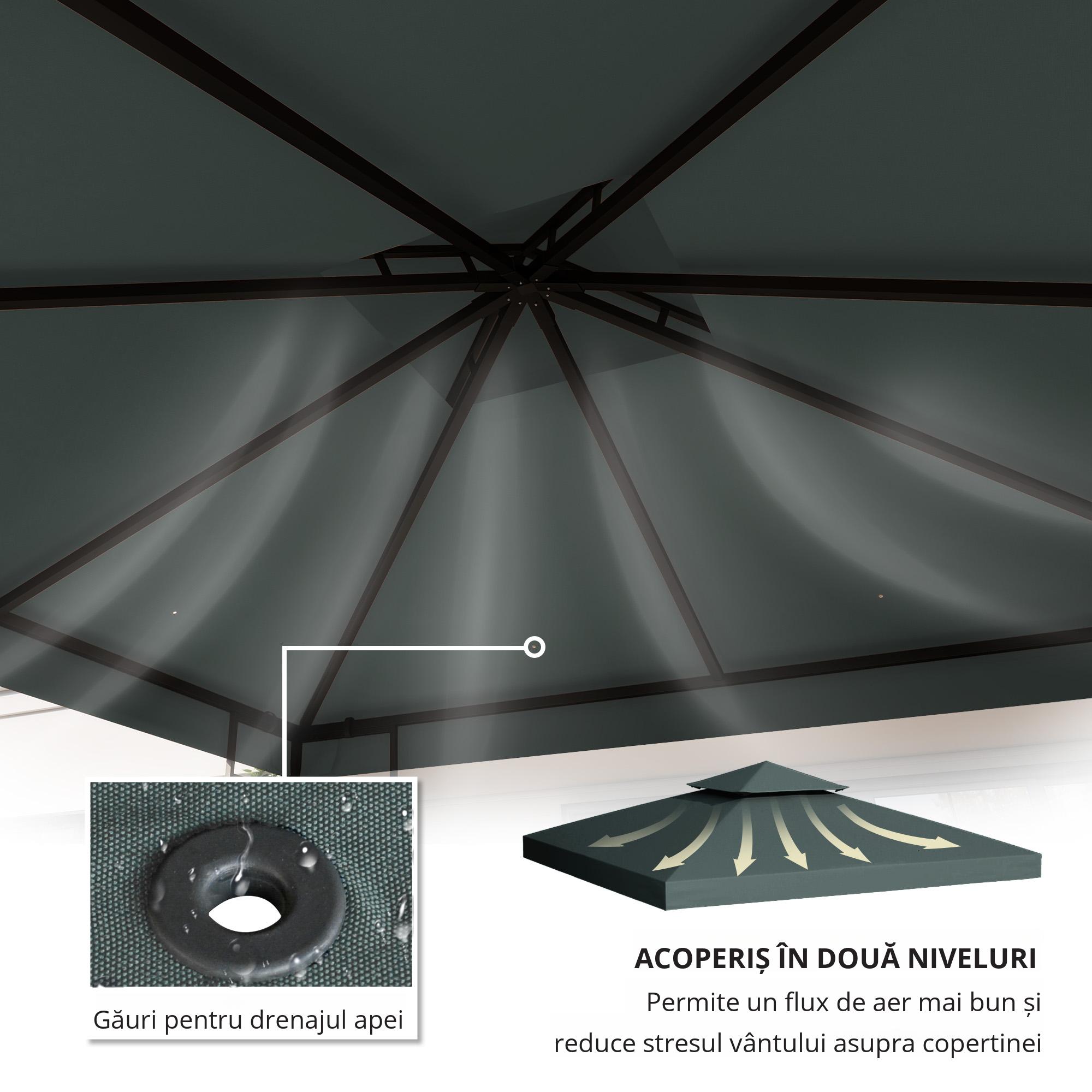Este usor sa aduceti o noua viata foisorului dvs. cu acest baldachin de schimb de la [BRAND NAME]. Fabricat din poliester acoperit cu PA pentru exterior, va protejeaza spatiul exterior de razele UV si rezista la decolorare. Acoperisul cu doua niveluri asigura o circulatie superioara a aerului si ajuta foisorul sa ramana stabil atunci cand este vant. Acoperisul pentru foisorul de 3x3m are 8 orificii de drenaj pentru apa de ploaie, astfel incat sa nu va faceti griji cu privire la acumularea apei.