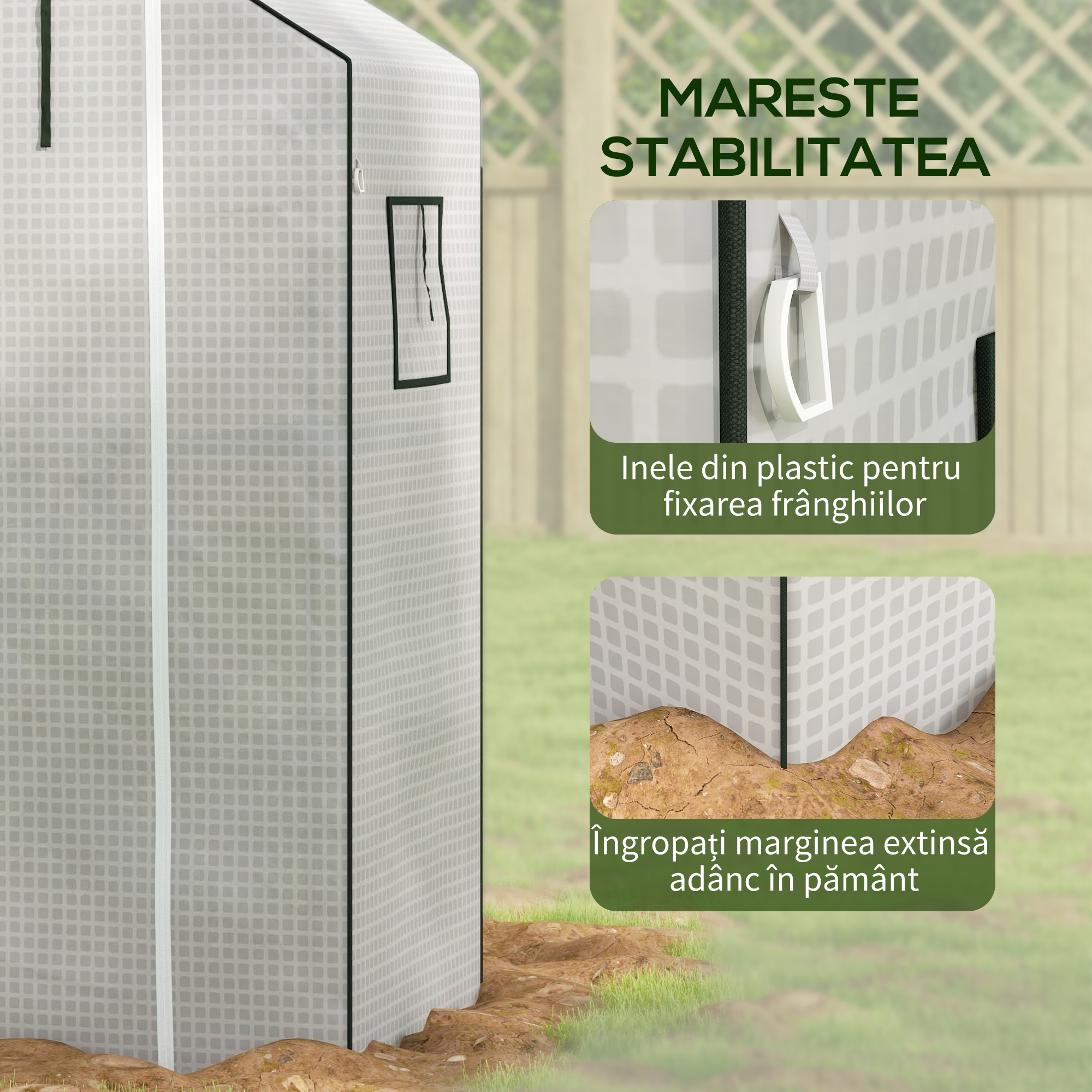 Daca acoperisul sereii tale de gradina este deteriorat, nu este nevoie sa arunci totul: economiseste si alege acoperisul de schimb [BRAND NAME], care iti permite sa prelungesti durata de viata a sereii tale! Realizat din PE dublu stratificat cu o retea interna care il face mai rezistent, folia de protectie este prevazuta cu margini extinse ce pot fi ingropate pentru a imbunatati stabilitatea sereii. Usa rulabila si ferestrele asigura o ventilatie optima in interior.