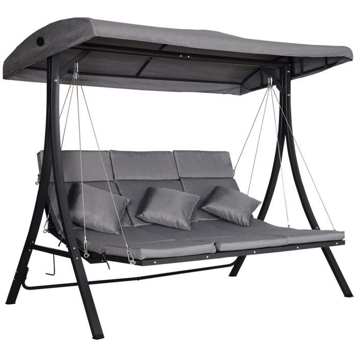 • [BRAND NAME] balansoar cu 3 scaune, reglabil, 200x115x68 cm, gri ideal pentru pentru spatiile exterioare precum curtea, gradina sau terasa.