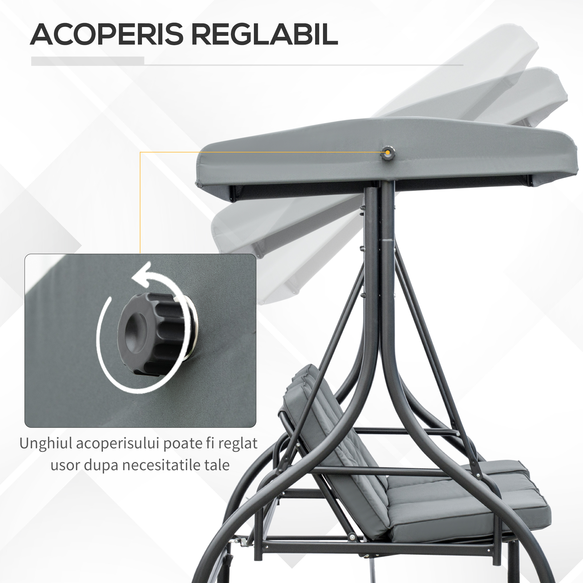 Creati-va un loc confortabil pentru a petrece timp in aer liber cu prietenii: balansoarul de gradina [BRAND NAME] este alegerea perfecta pentru toata lumea! Se pot aseza 3 persoane sau se poate transforma intr-un pat de relaxare, astfel incat sa va puteti bucura de o siesta in aer liber. Balansoarul de exterior cu copertina reglabila va protejeaza de soare, iar perna foarte groasa va ofera suficient confort pentru relaxare