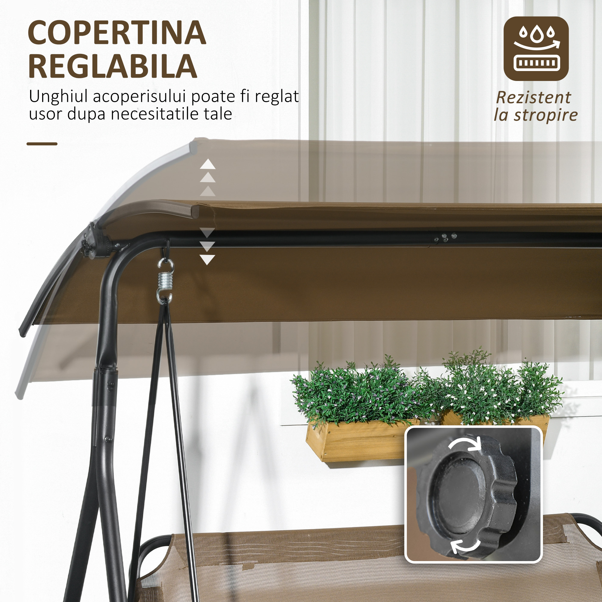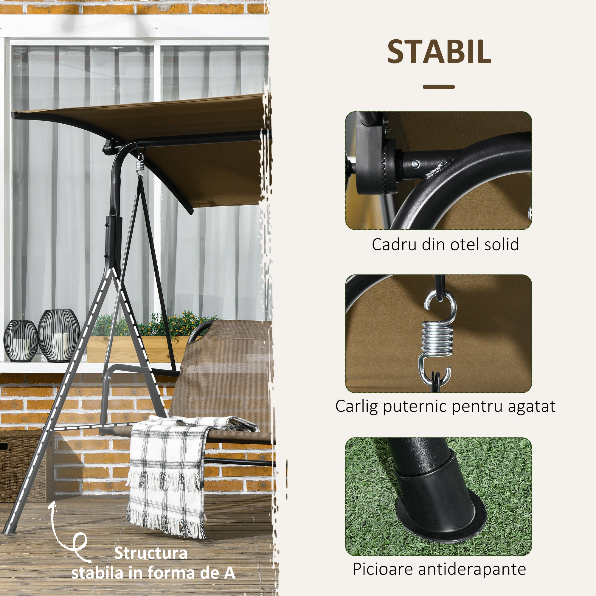 Relaxeaza-te in aer liber cu balansoarul nostru confortabil de gradina [BRAND NAME] cu 3 locuri. Structura balansoarului este realizata din metal pentru a oferi stabilitate şi rezistenţa, astfel incat sa te poti legana linistit. Acest balansoar de exterior dispune de o copertina practica inclinabila pentru a te proteja de soare şi de razele UV in orice moment al zilei. Nu-l rata! Amenajeaza-ti chiar acum spaţiul tau in aer liber pentru zile insorite!