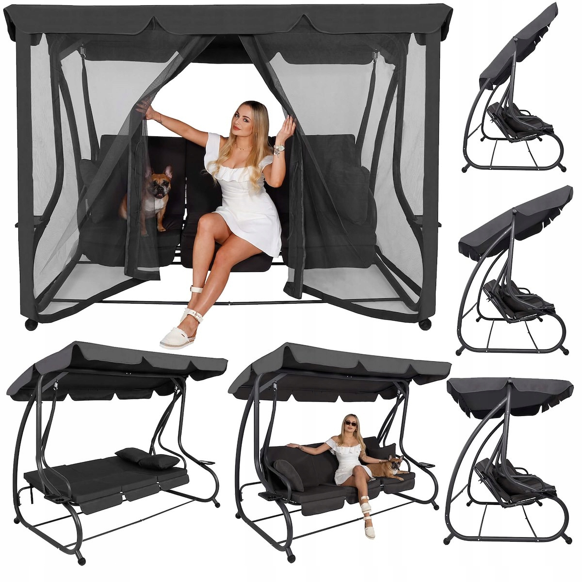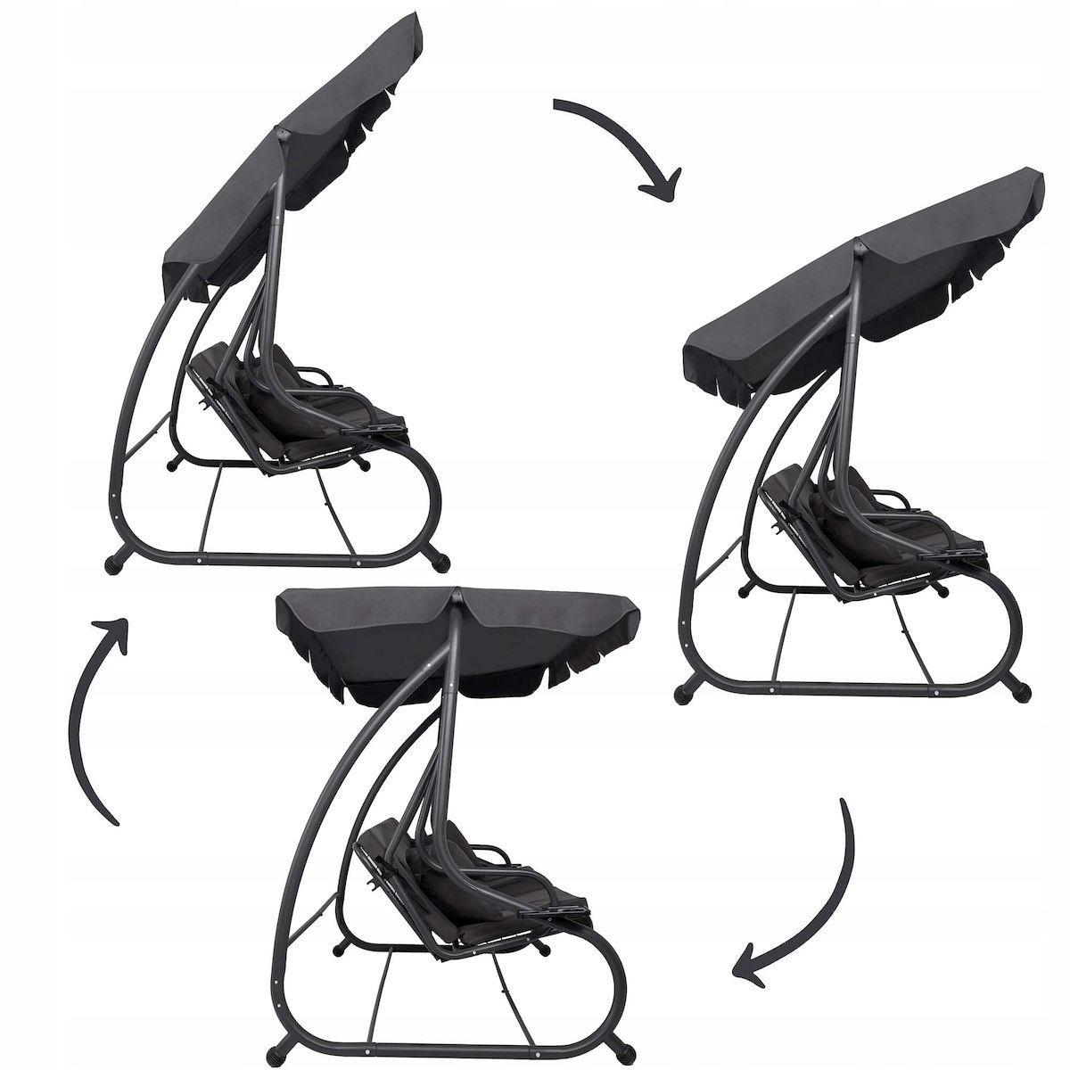 Canapeaua balansoar va permite sa va relaxati in zilele si serile de vara alaturi de cei dragi. Pernele confortabile, conectate, plasate pe scaun si pe spatar, va permit sa va relaxati in aer curat. Acoperisul reglabil va permite reglarea individuala in fiecare moment al zilei, astfel incat soarele sa nu deranjeze utilizatorii. Dupa desfacerea spatarului, canapeaua suspendata va oferi odihna completa. Mesele laterale ofera acces usor la bauturi sau alte articole mici.