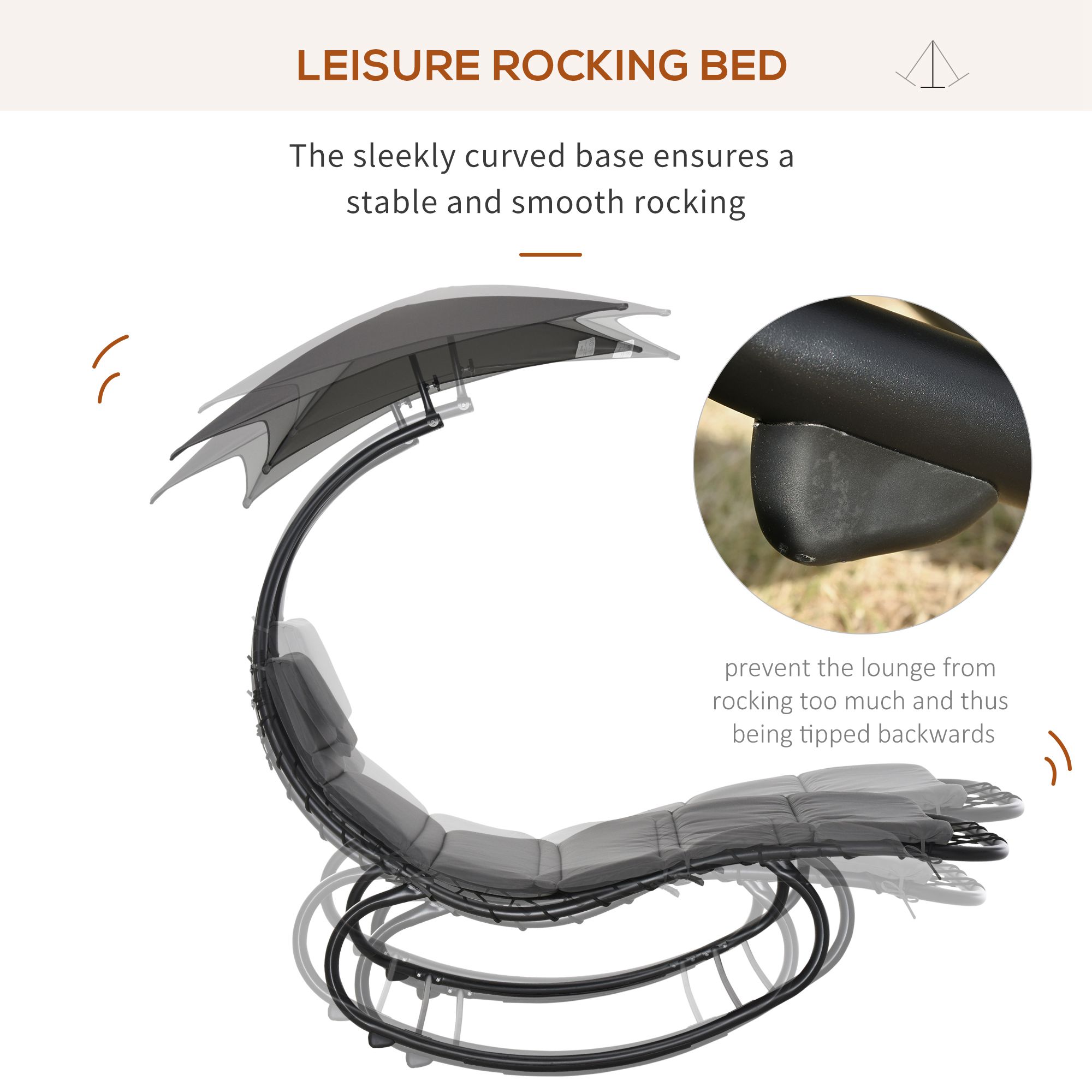 Luati o pauza si relaxati-va in gradina, pe noul sezlong [BRAND NAME]. Are un scaun captusit si o tetiera confortabila pentru a-ti oferi relaxare maxima. Intreaga structura este construita din tevi din otel si poate suporta o greutate de pana la 120 kg. Ce mai astepti, bea o bautura proaspata, citeste cartea ta preferata si bucura-te de vara pe noul tau patut balansoar [BRAND NAME].