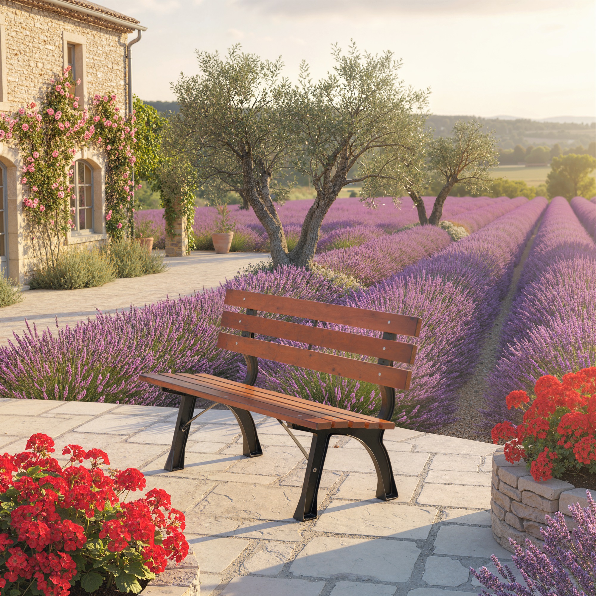 Bucura-te de momente placute in aer liber cu un plus de eleganta, datorita bancii de gradina [BRAND NAME]. Nu doar ca ofera un sezut confortabil, dar are si un design atragator pentru terasa sau veranda ta. Realizata din fonta de inalta calitate, cu sezut si spatar din lemn natural, aceasta banca este complementul ideal pentru spatiul tau exterior.