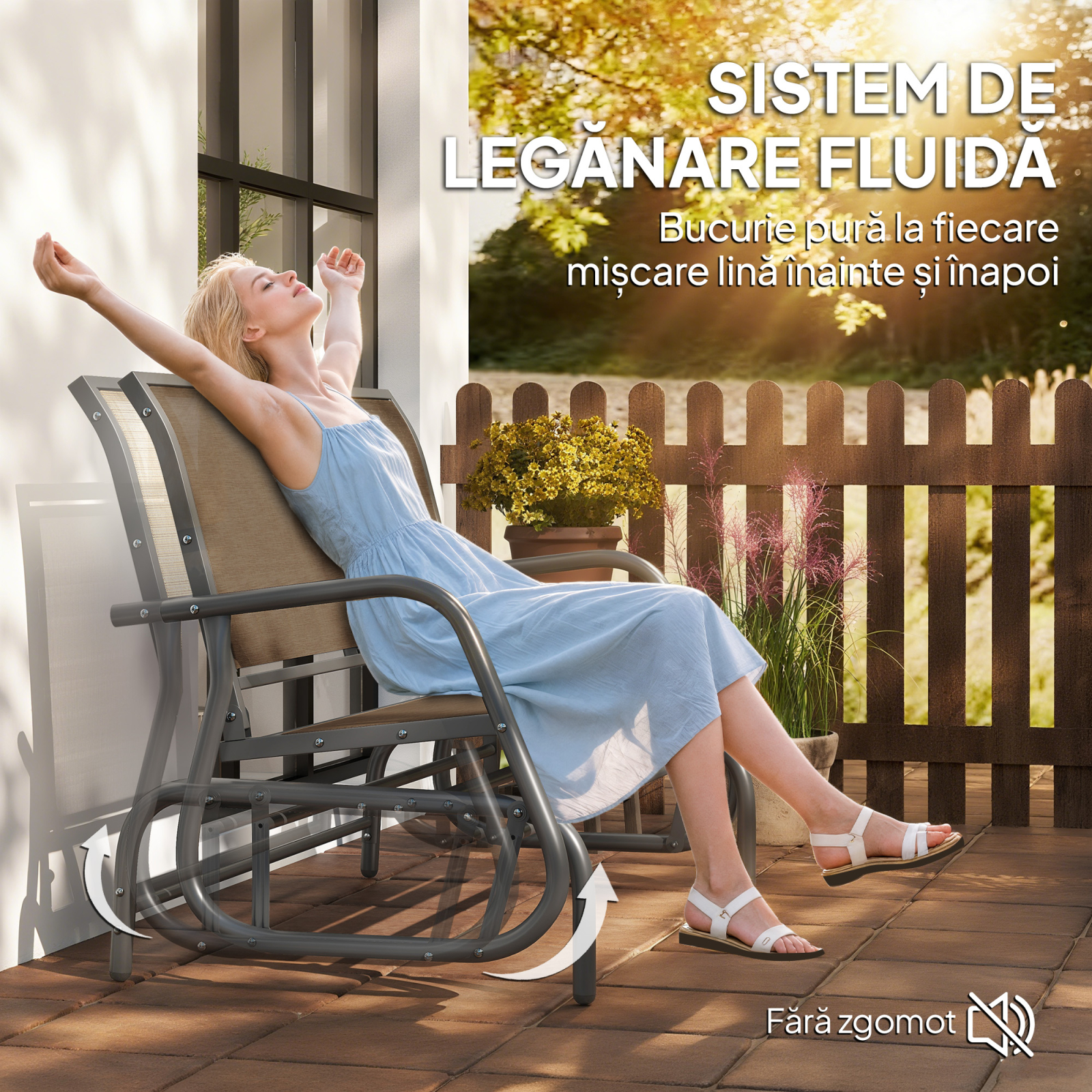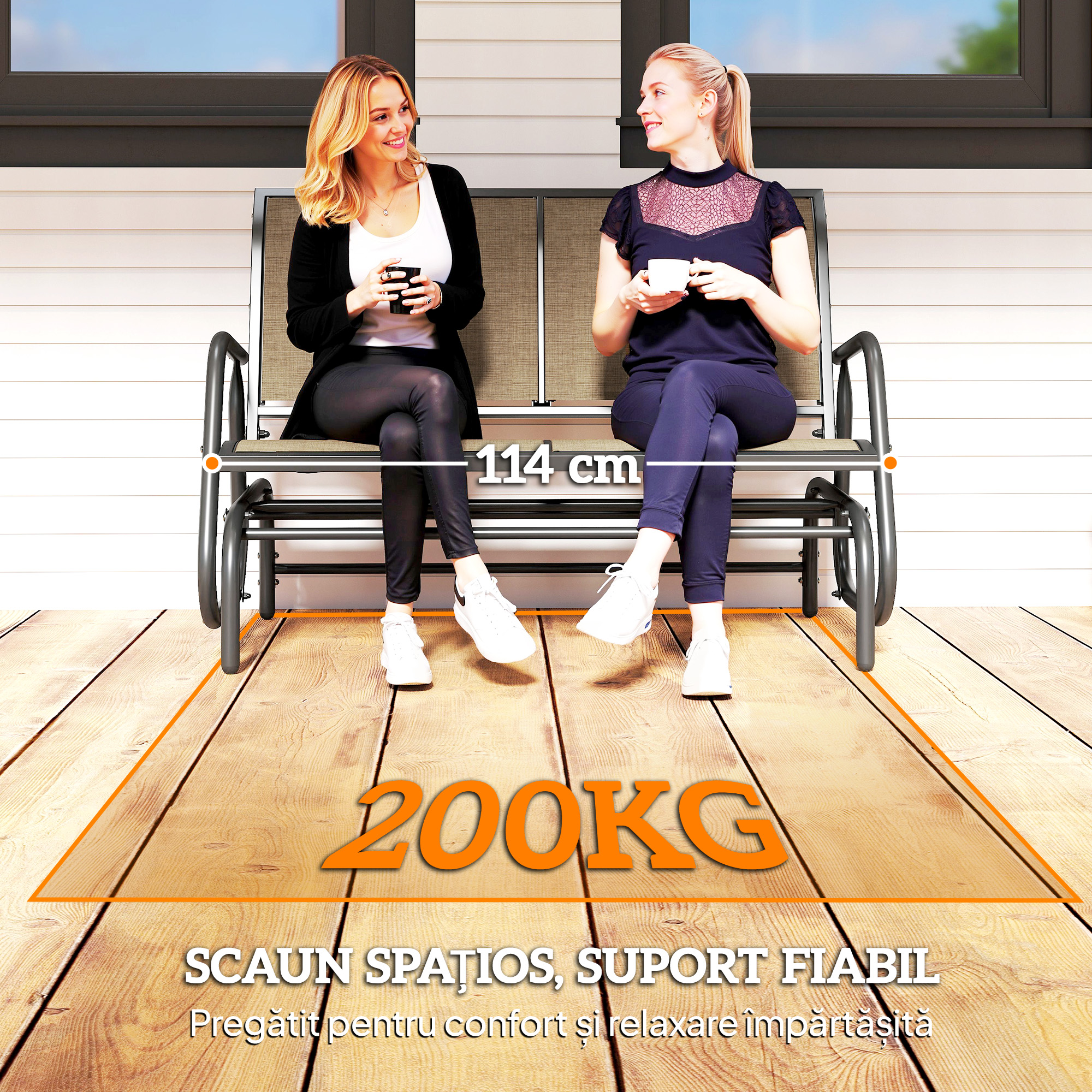 iti lipseste un loc in care sa te relaxezi in gradina? Banca balansoar [BRAND NAME] este perfecta pentru a oferi o sedere confortabila pentru 2 persoane. sezutul si spatarul din textilena asigura o respirabilitate maxima si un confort optim in zilele fierbinti de vara. Sistemul de leganare fluid iti permite sa te relaxezi in companie si sa te bucuri de momentele petrecute in aer liber. Completeaza-ti gradina cu acest balansoar cu 2 locuri!