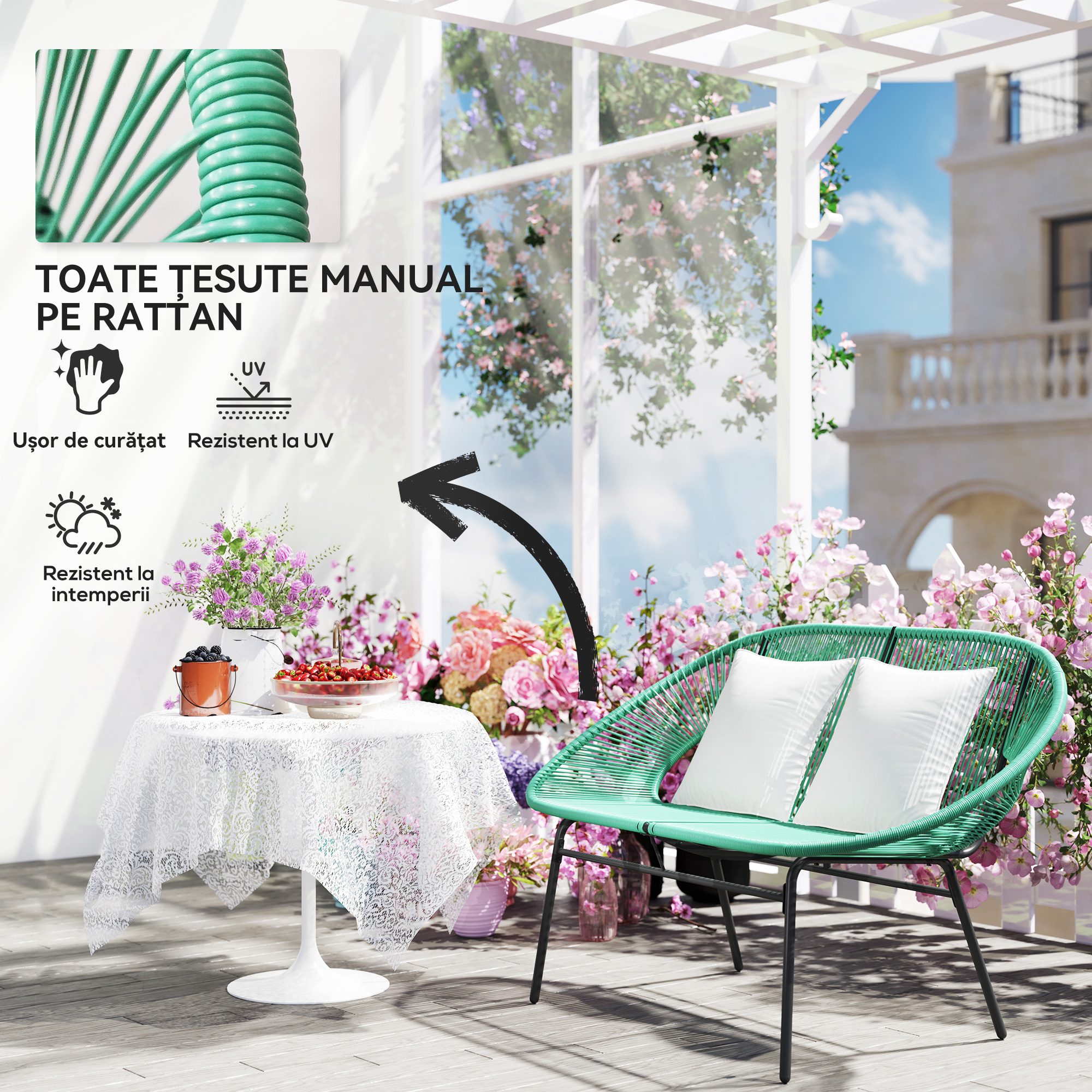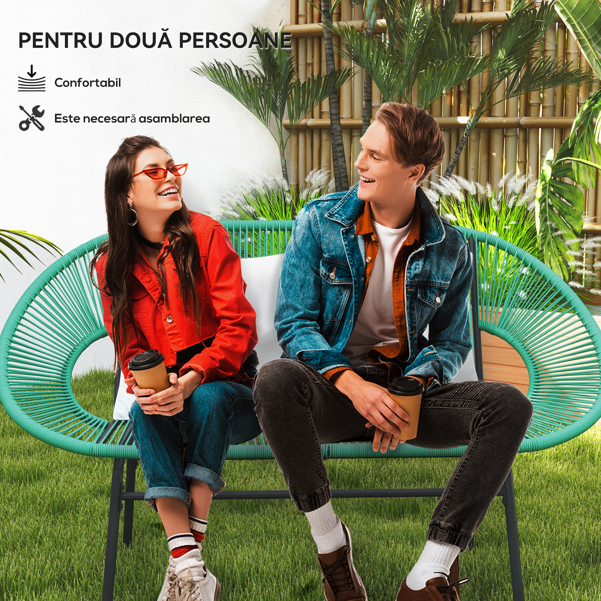 Lasa-te fermecat de eleganta noastra canapea de gradina din ratan sintetic! sezutul din snur PE si structura din otel creeaza un design rafinat pentru momente de relaxare pura. Canapeaua de exterior gazduieste confortabil 2 persoane, avand un sezut amplu si confortabil. Stilul sau unic, care combina maiestria otelului si a snurului, va adauga o atmosfera sic si zen spatiilor tale exterioare.