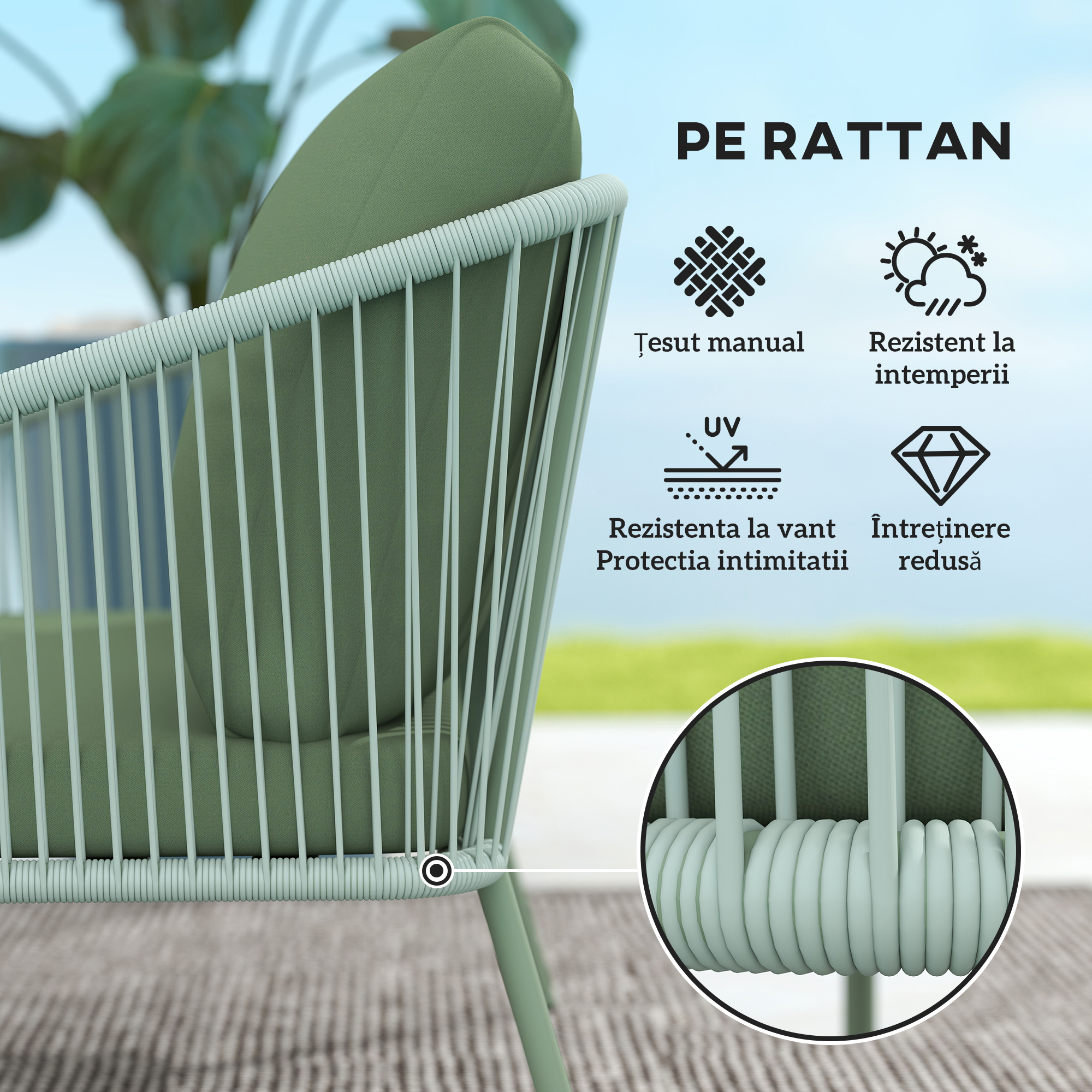 Material: Ratan PE, Otel