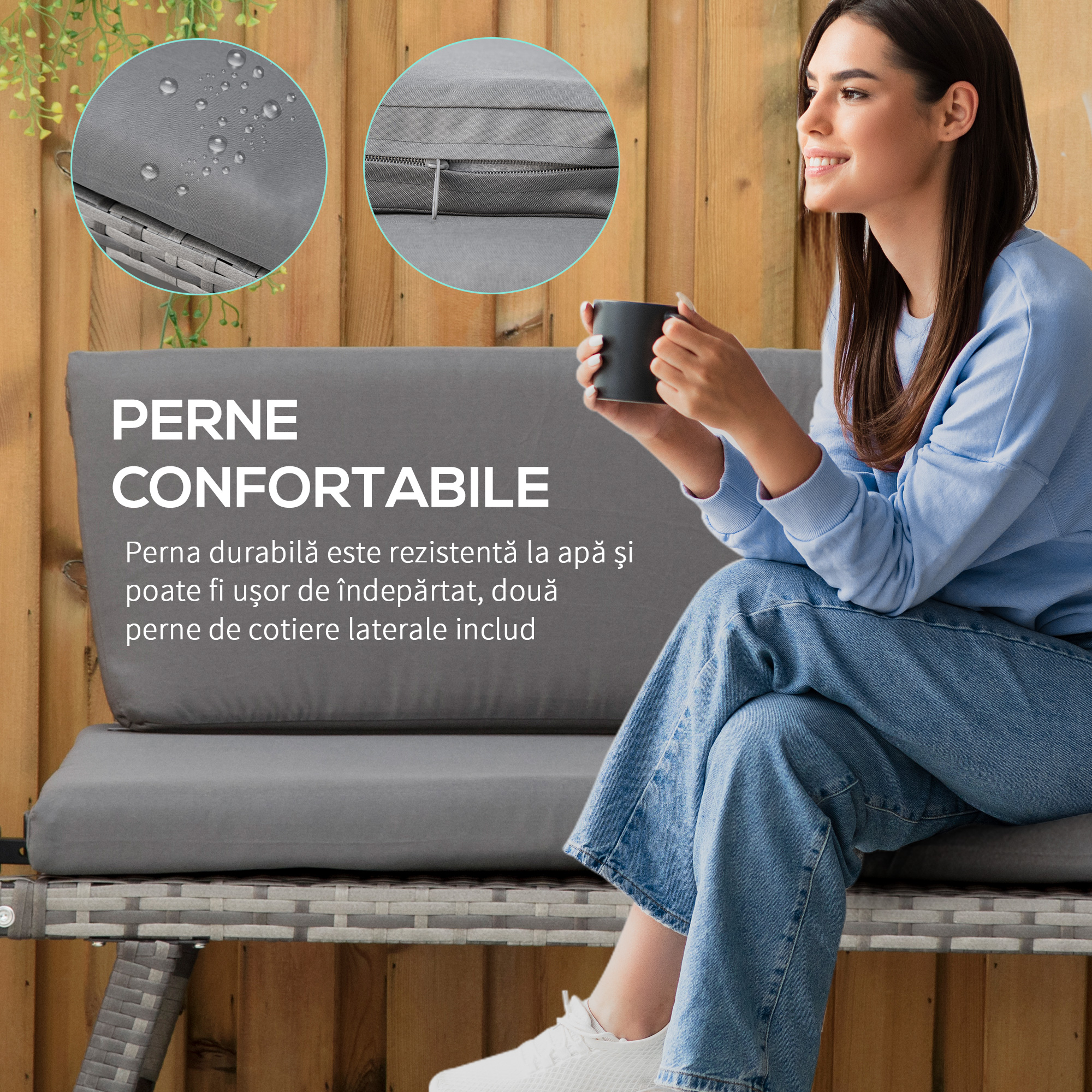• CAPITONAJ EXTRA: Sezuta si spatarul capitonate ale canapelei de gradina sunt concepute pentru a va oferi un confort exceptional