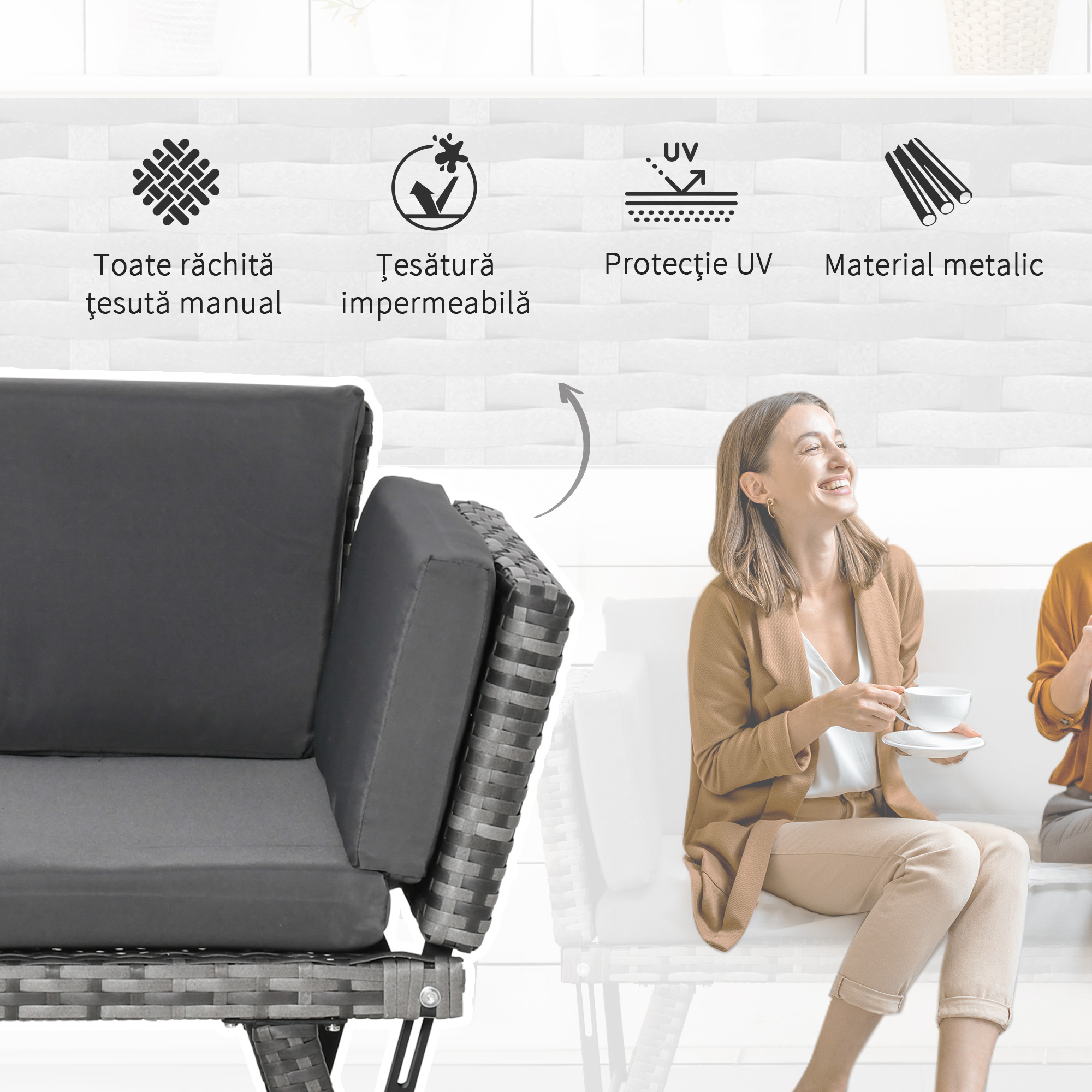 • VERSATILA: Aceasta canapea din ratan este ideala pentru utilizare in gradina, pe balcon, pe terasa etc.