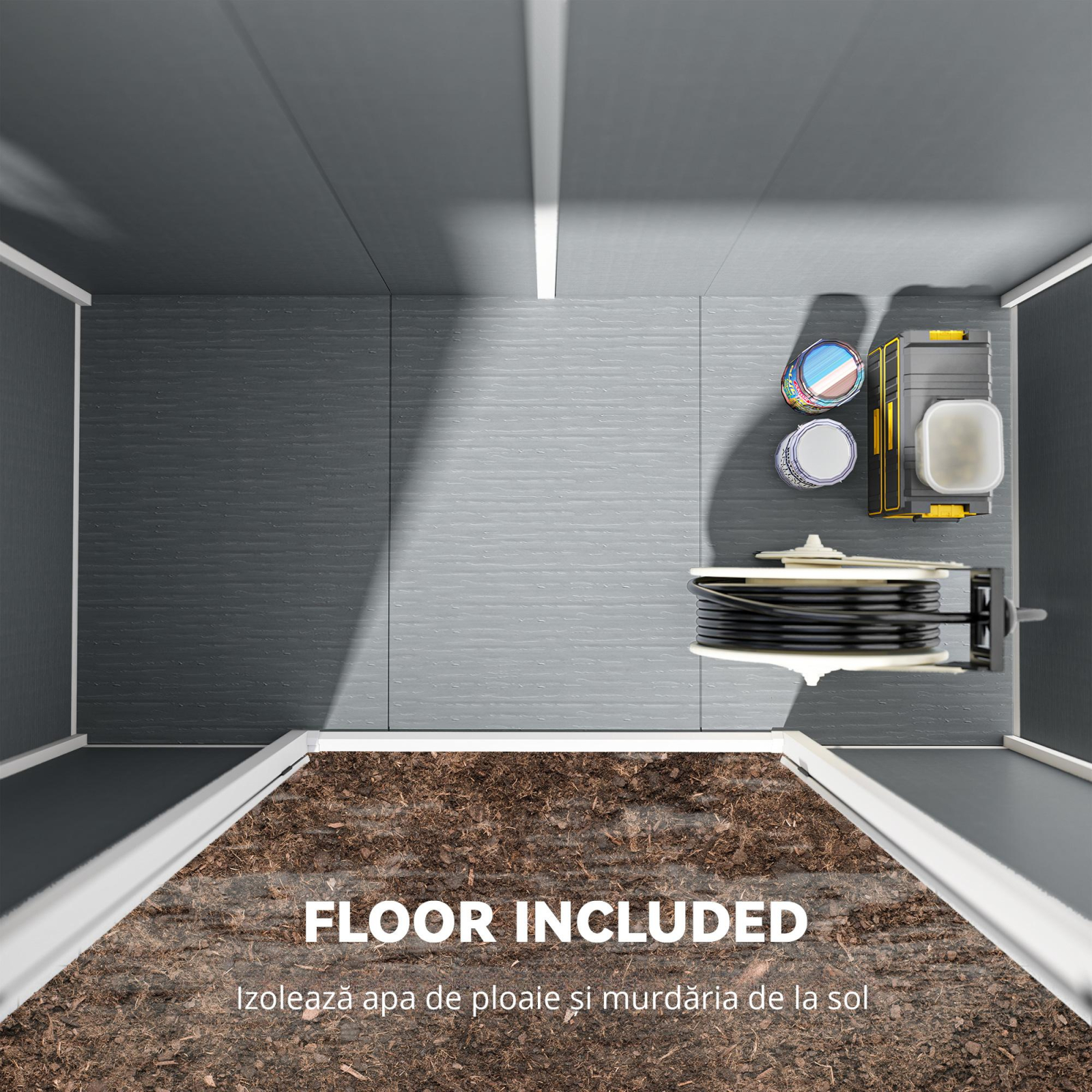 Aceasta casuta de gradina ofera spatiu protejat pentru depozitarea uneltelor, echipamentelor si materialelor de gradinarit. Construita din materiale rezistente la intemperii, este echipata cu podea, acoperis inclinat pentru drenaj eficient si usi duble cu incuietoare pentru siguranta sporita. Se integreaza perfect in orice colt de gradina.