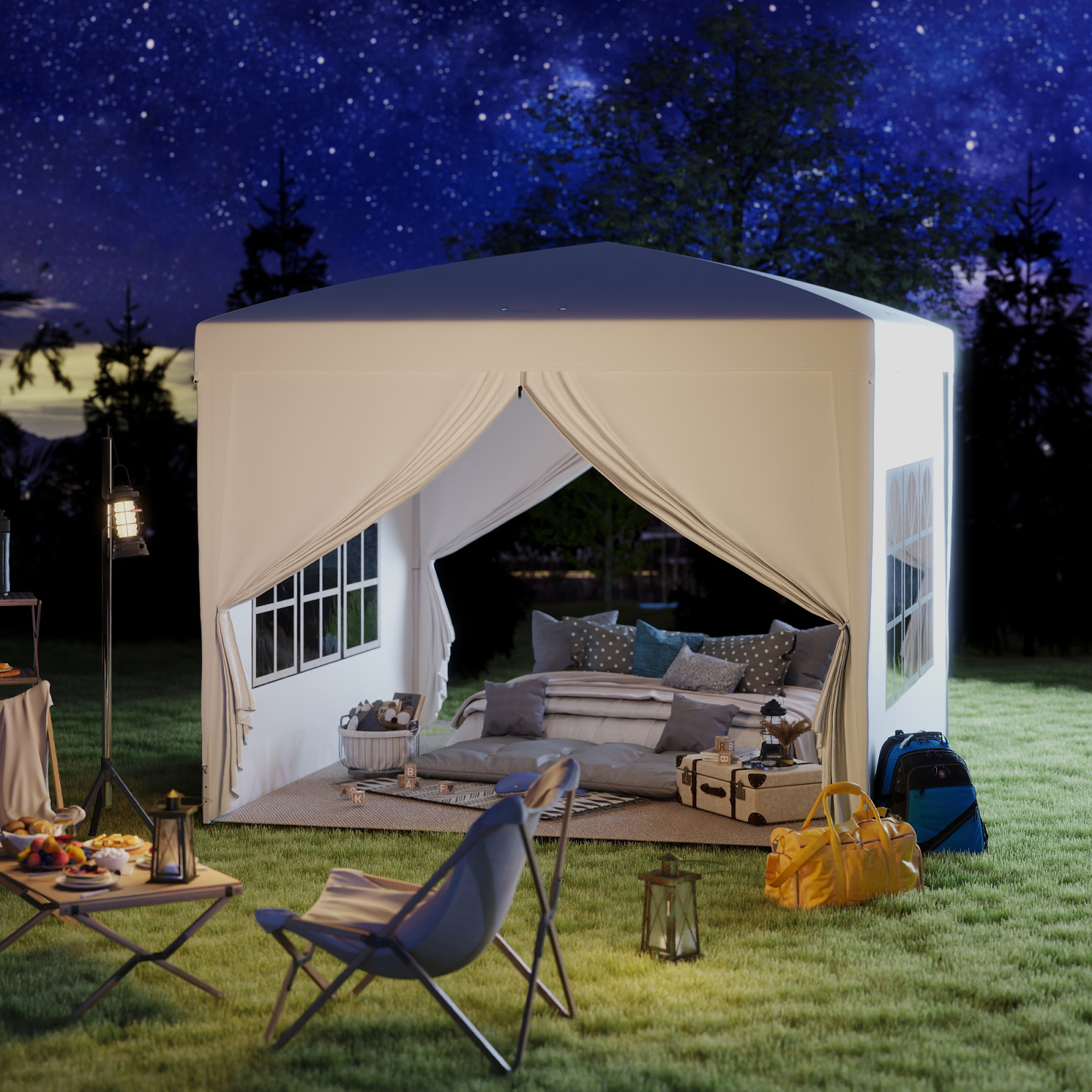 Creeaza un spatiu acoperit in gradina cu cortul [BRAND NAME], rezistent la intemperii, cu structura din otel pliabila si panouri laterale detasabile. Materialul impermeabil asigura protectie solara si impotriva ploii. Ideal pentru nunti, petreceri sau targuri in aer liber. Usor de transportat si montat - un cort elegant si versatil.