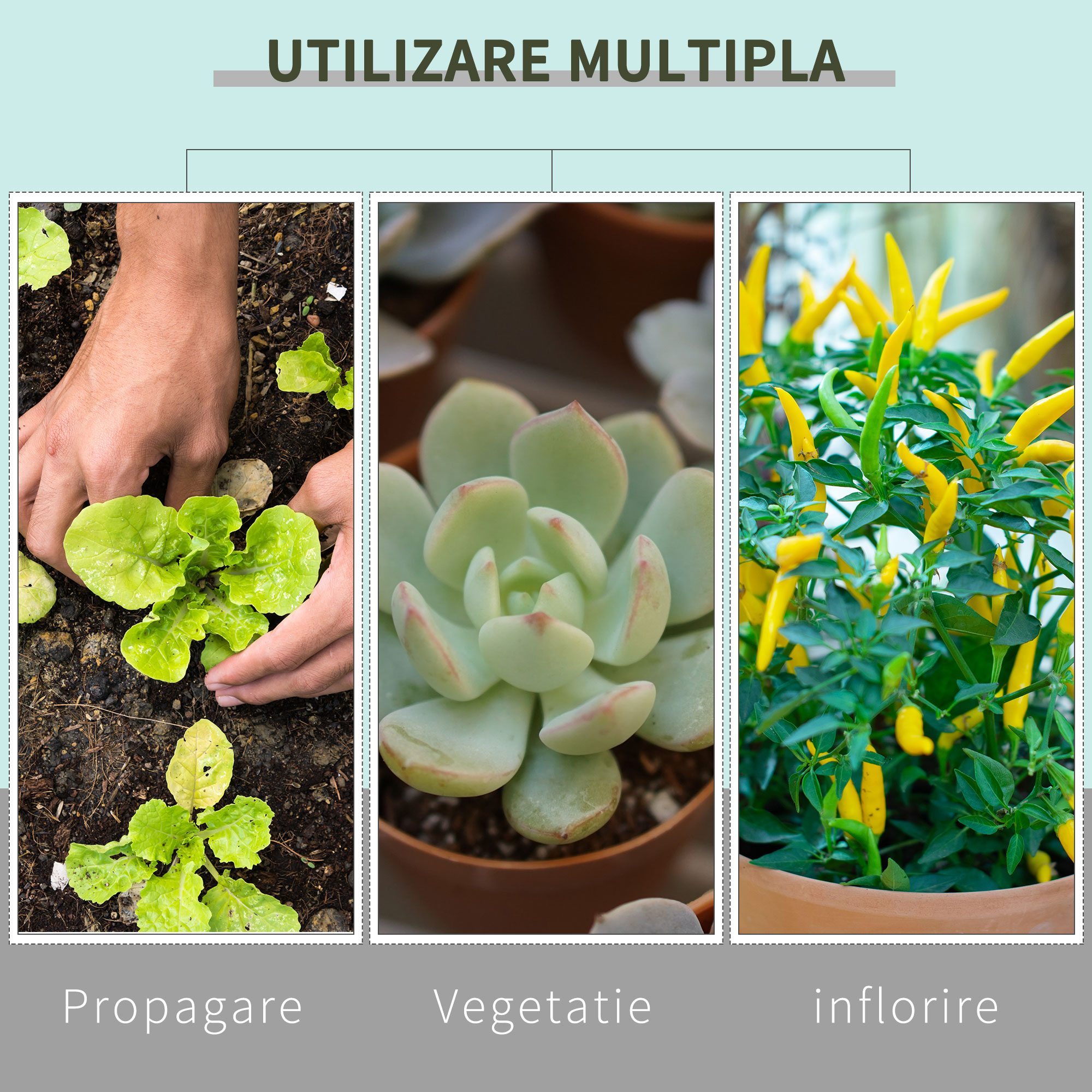 Permite plantelor tale sa utilizeze eficient lumina pentru a creste cu aceasta sera hidroponica [BRAND NAME]. Este fabricata din tesatura Oxford 600D, cu captuseala reflectorizanta interioara pentru a optimiza lumina si temperatura. Fermoarele rezistente si cusaturile intarite ajuta la retinerea luminii, pentru a asigura o cultivare hidroponica eficienta. Asigura o crestere perfecta a plantelor tale cu sera noastra hidroponica!