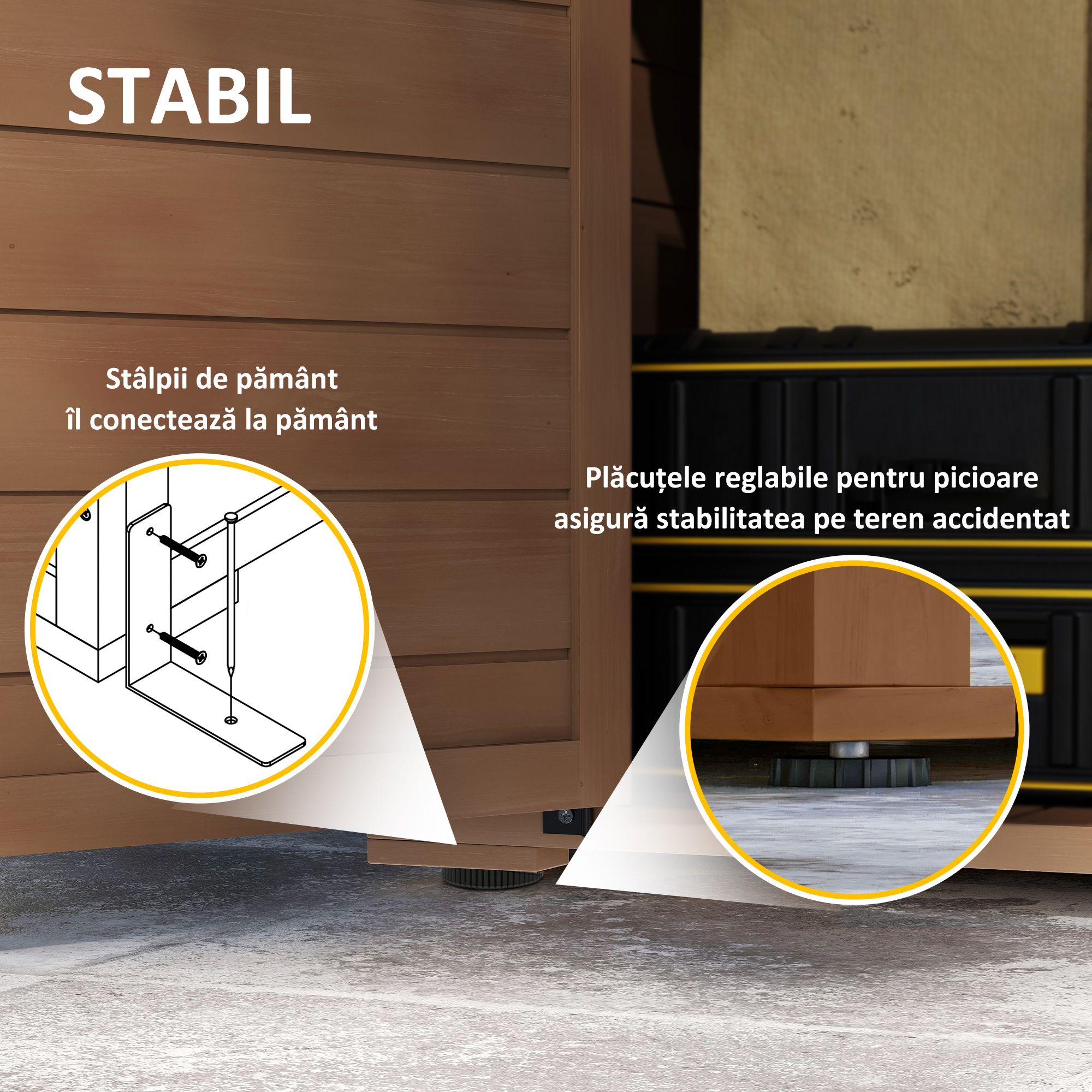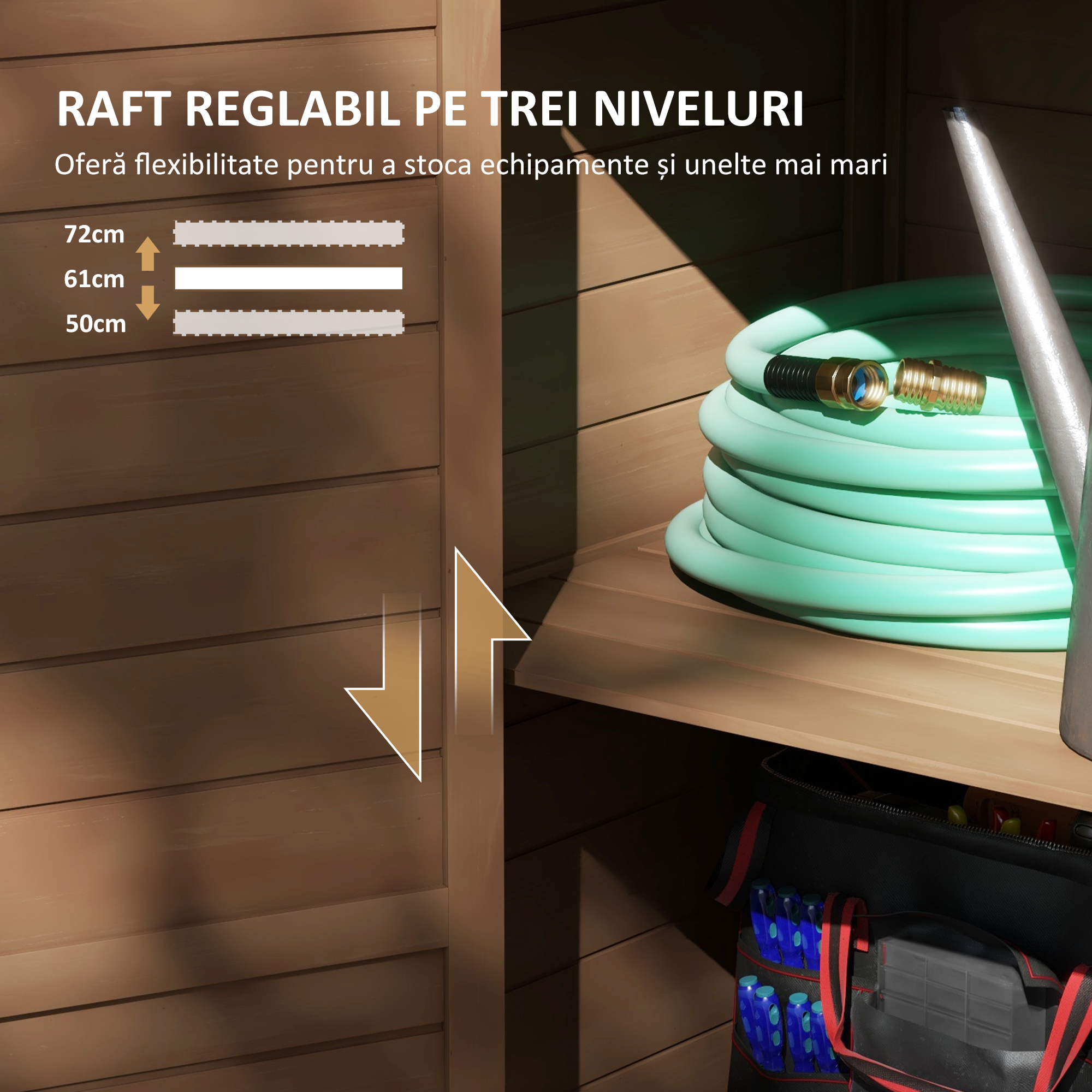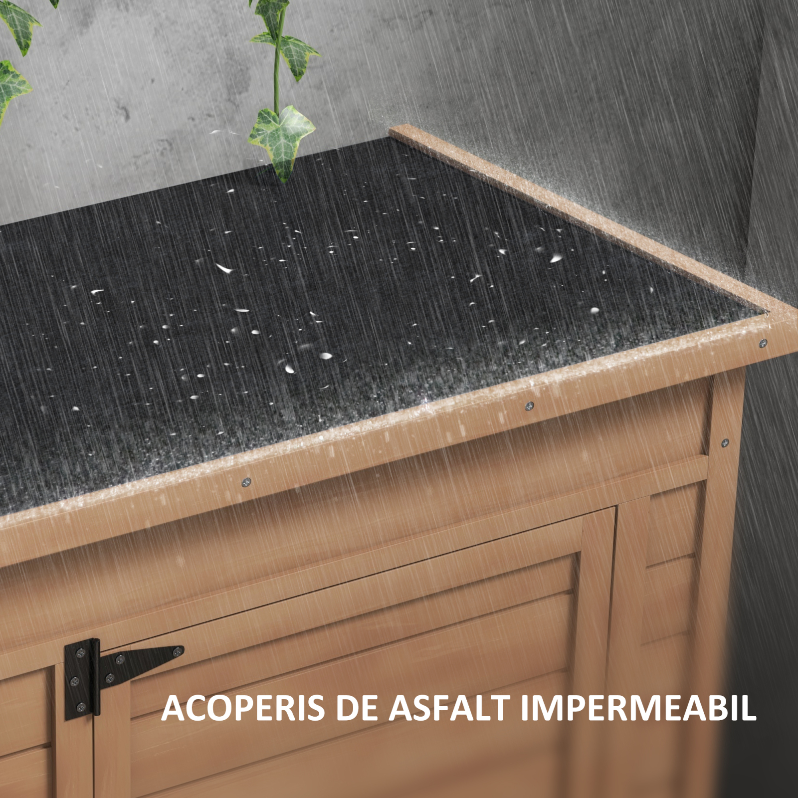 Ai nevoie de spatiu suplimentar pentru unelte sau accesorii de gradinarit? Acest dulapior [BRAND NAME], compact si elegant, este ideal pentru depozitare in curte sau pe balcon. Construit din lemn rezistent la intemperii si prevazut cu acoperis inclinat, ofera protectie eficienta si acces rapid la obiectele tale esentiale.