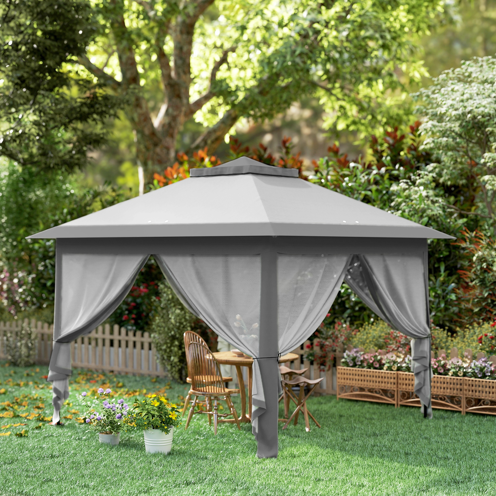 Fa-ti gradina mai functionala si practica cu acest foisor de exterior [BRAND NAME]. Cadrul din metal vopsit cu pulbere este reglabil pe 3 niveluri diferite de inaltime, iar peretii laterali cu plasa anti-tantari ofera un spatiu de relaxare protejat de soare si insecte. Bucura-te de momentele petrecute in aer liber cu aceasta structura fiabila, care completeaza perfect decorul tau exterior!