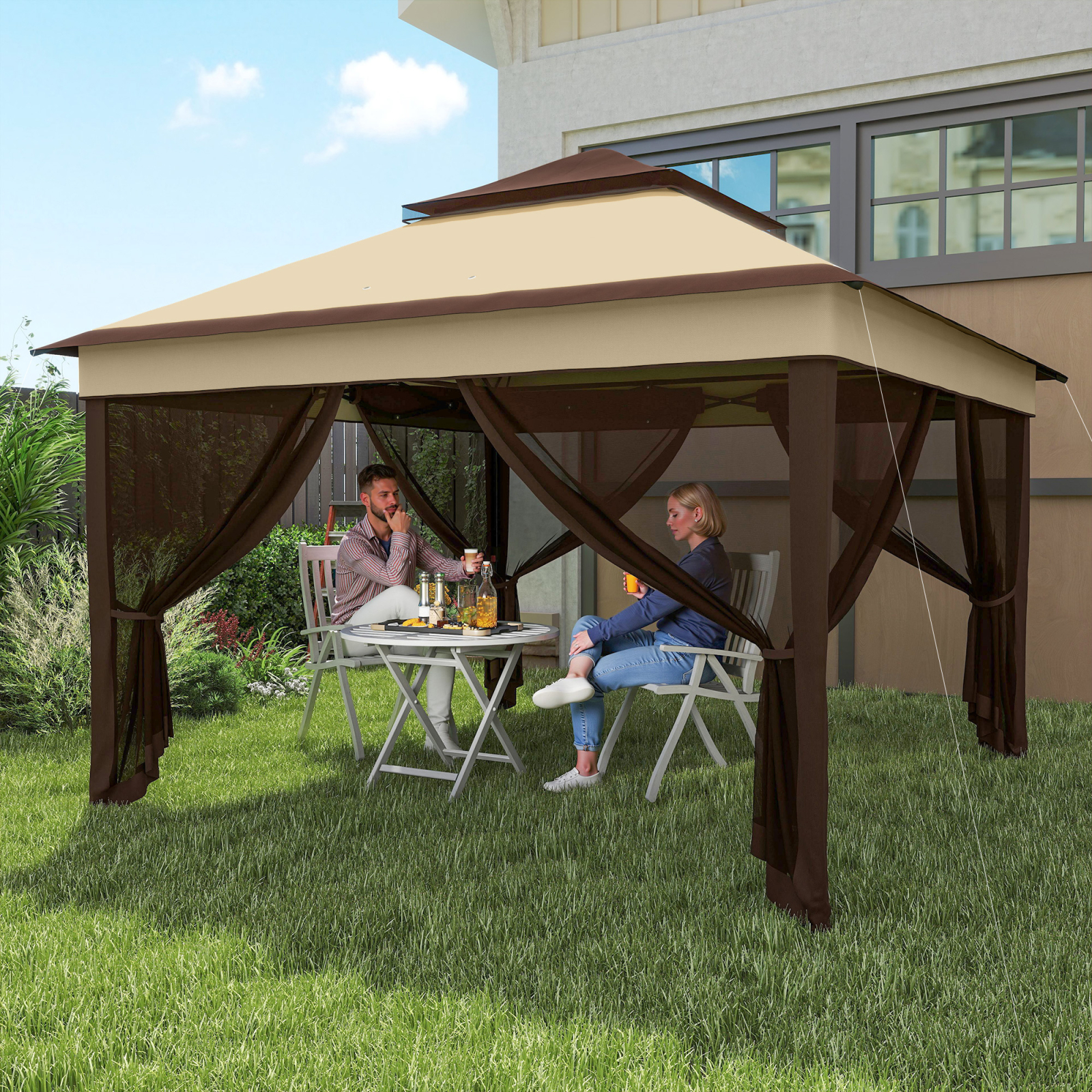 Un adapost la indemana pentru adunarile in aer liber, asamblat rapid - aduceti acest foisor de tip [BRAND NAME] 3 x 3(m) cu laterale in gradina dvs. in acest sezon si nu numai. Cadrul metalic reglabil pe trei niveluri inseamna un miez puternic, care poate fi setat la inaltimea cea mai potrivita pentru dvs. Vine cu perdele detasabile din plasa - creand cu usurinta o senzatie privata si deschisa. Geanta inclusa pentru depozitare si transport usor.