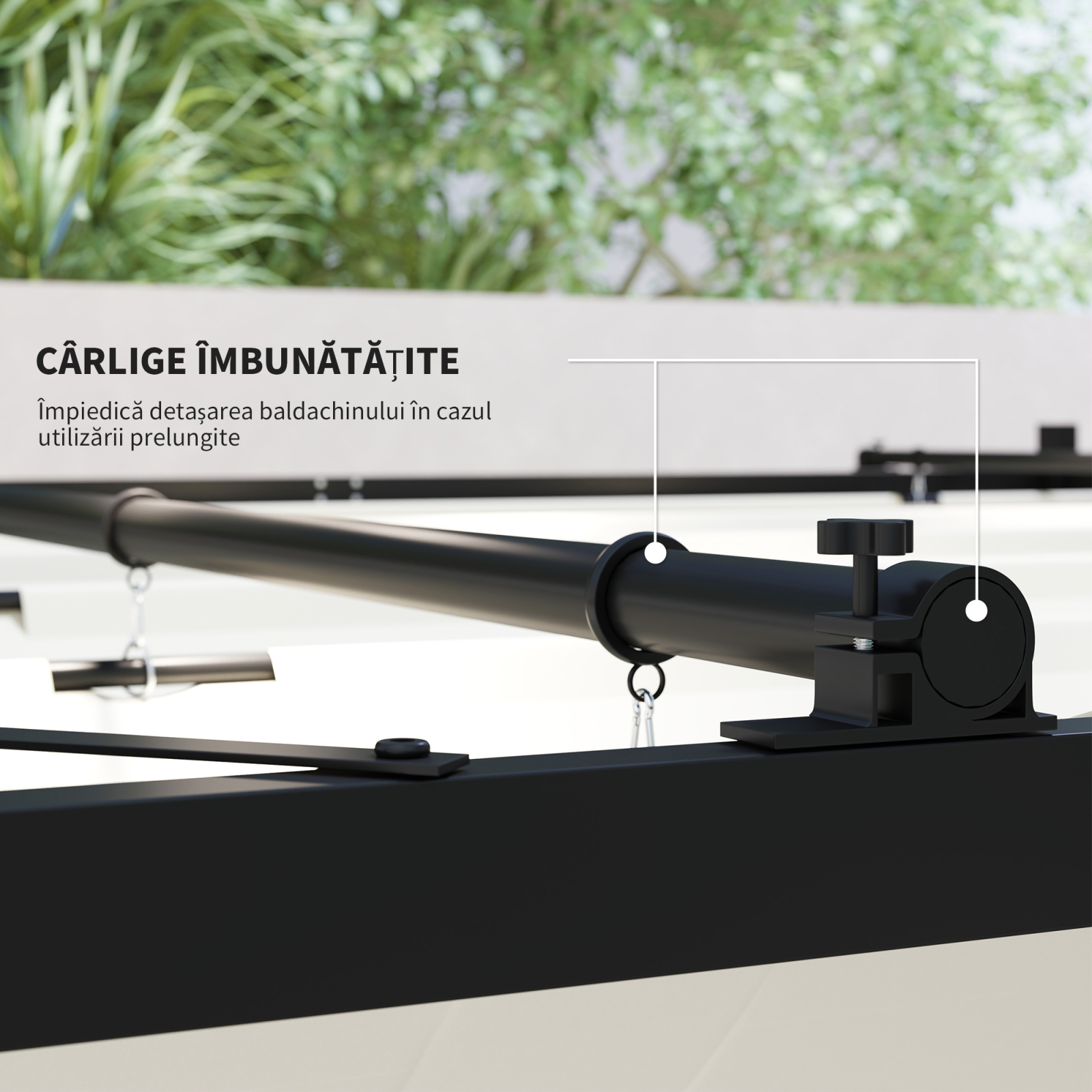 Creeaza un colt de relaxare protejat de soare cu aceasta pergola moderna [BRAND NAME]. Cu acoperis retractabil rezistent la apa si structura solida, este perfecta pentru gradina, terasa sau curte. Designul elegant, in alb crem, completeaza armonios orice ambient exterior.