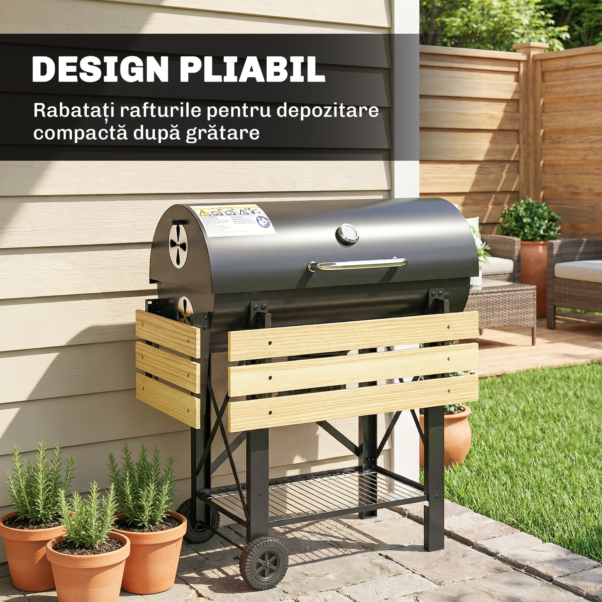 Gatitul pe gratar cu carbuni poate fi dezordonat: spatiu insuficient pentru mancare si un aparat voluminos. Gratarul cu carbuni [BRAND NAME] rezolva aceste probleme cu rafturi generoase, o suprafata mare de gatire si rafturi pliabile. Devine compact dupa utilizare, aducand ordine si practicitate momentelor tale in aer liber cu un gratar portabil.