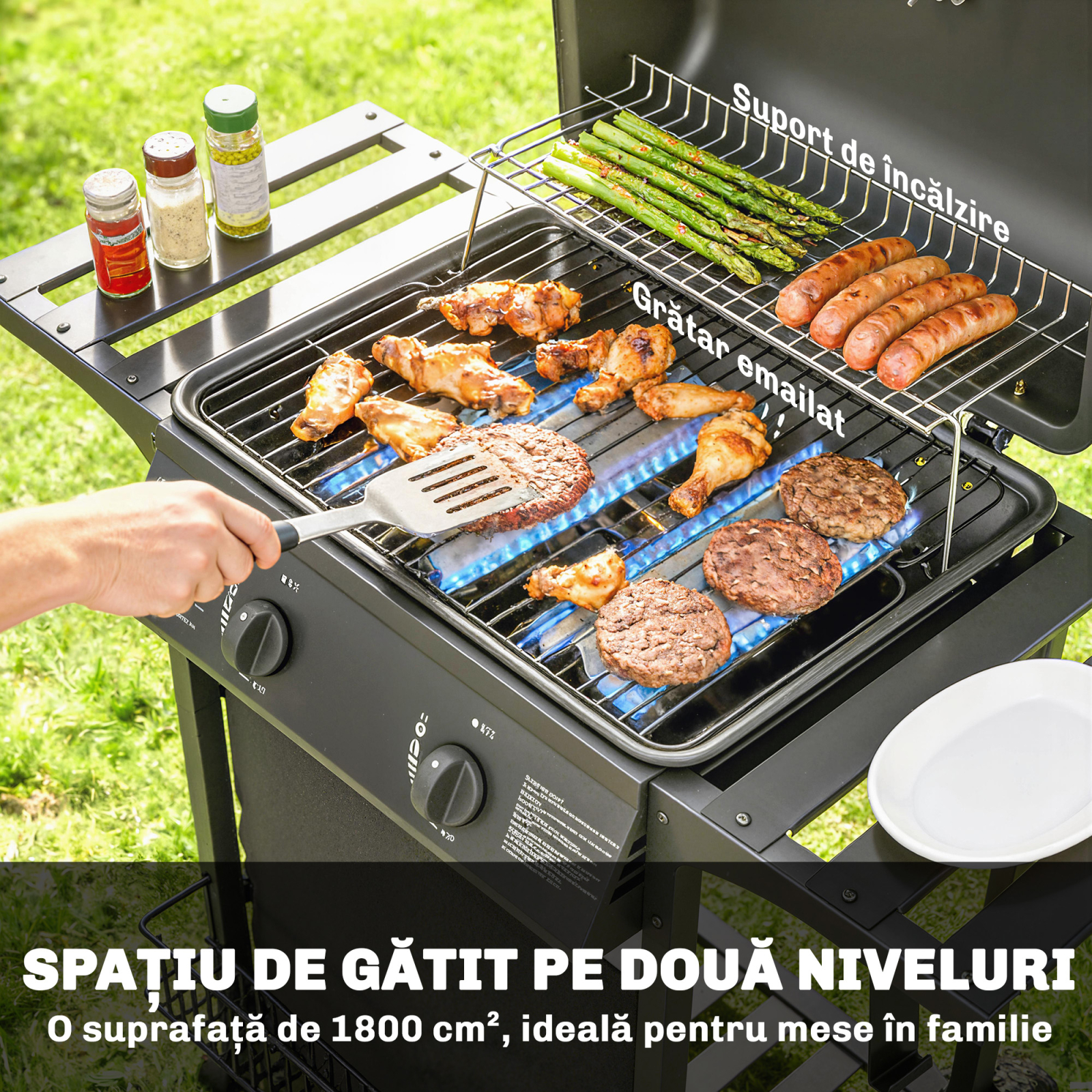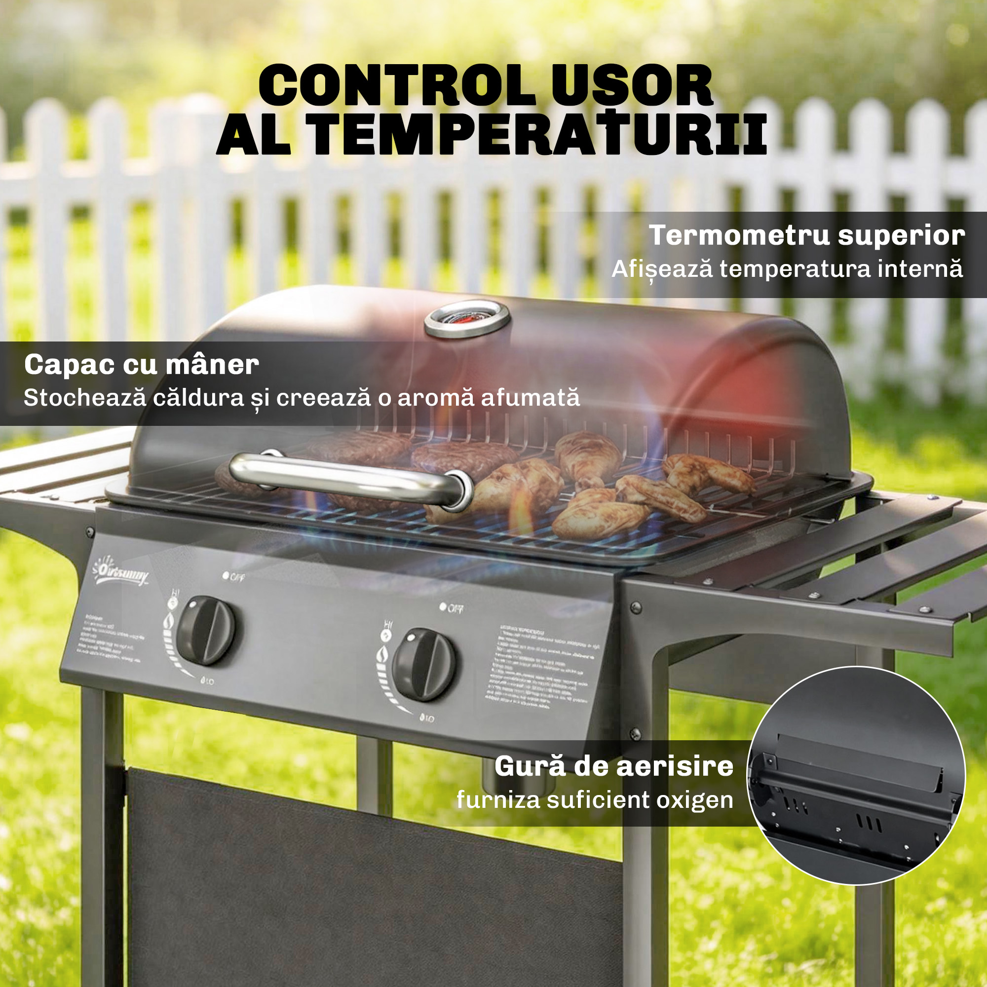 Gratarele pe gaz pot parea complicate cu toate alimentele si accesoriile de gestionat, dar gratarul pe gaz [BRAND NAME] simplifica totul. Cu doua arzatoare, grila pentru mentinerea mancarii calde, mese laterale si un cos pentru condimente, poti frige, organiza si servi cu usurinta. Acest gratar pe gaz face ca organizarea si bucuria petrecerii sa fie fara stres.