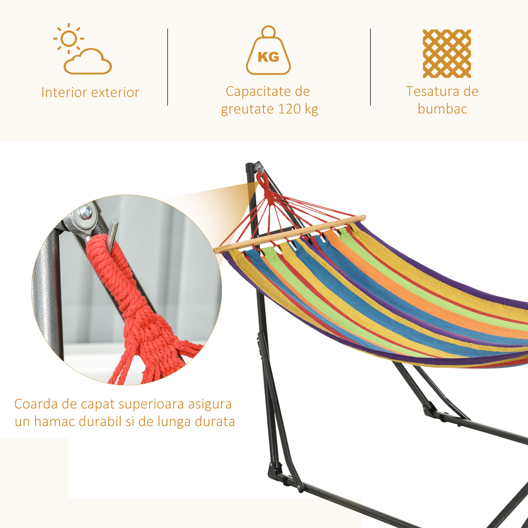 Creeaza-ti propria oaza de relaxare in gradina cu hamacul nostru autoportant [BRAND NAME]. Gazduieste confortabil o persoana si poate sustine hamace lungi de pana la 188 cm. Suportul pentru hamac este multifunctional, fiind suficient sa pozitionezi bara inclusa pentru a avea un spatiu practic unde sa-ti usuci hainele. Fa zilele frumoase mai confortabile cu hamacul nostru!