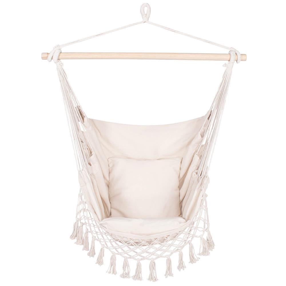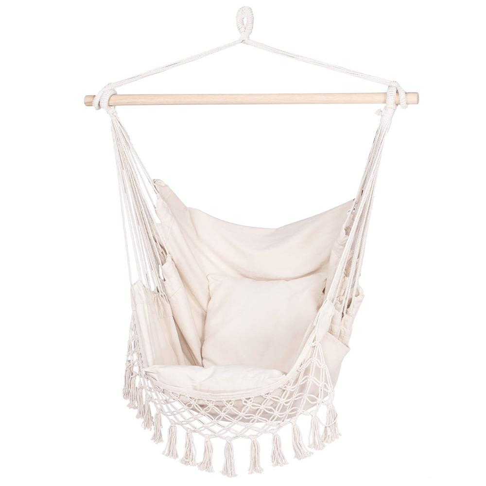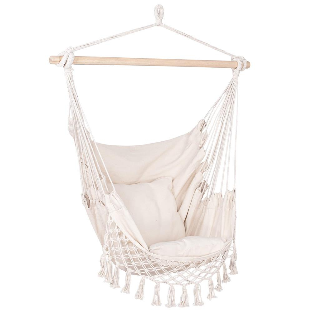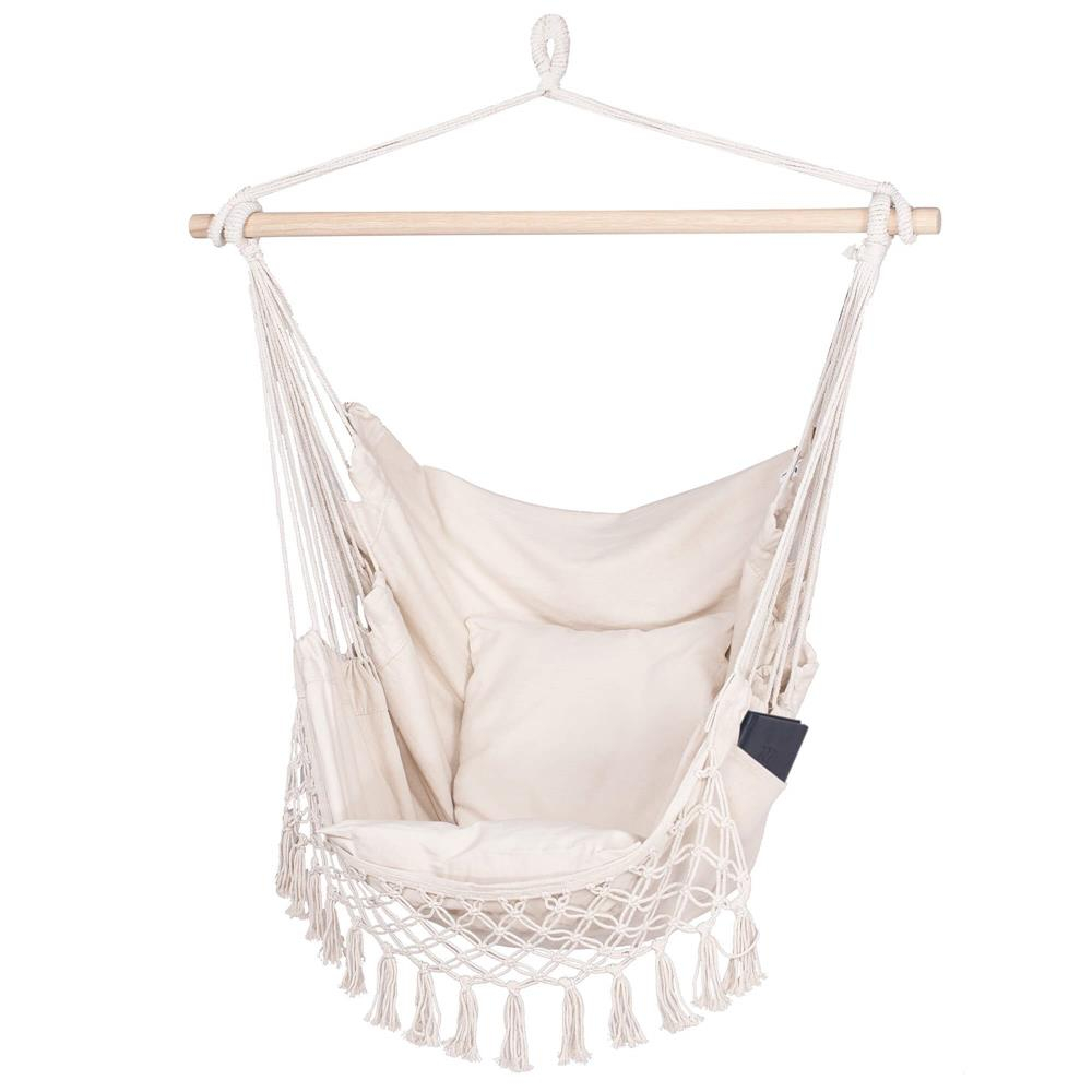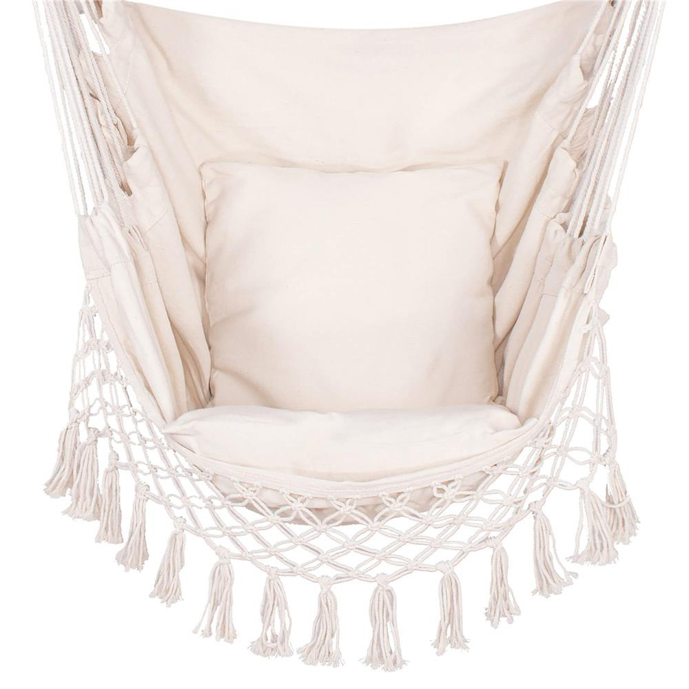 Hamac brazilian tip scaun, cu 2 perne, crem, max 150 kg, 130×100 cm