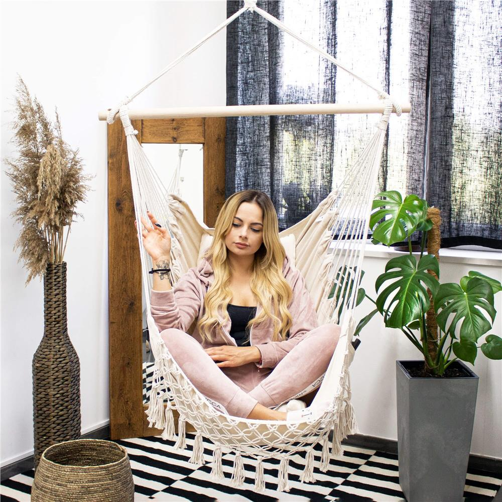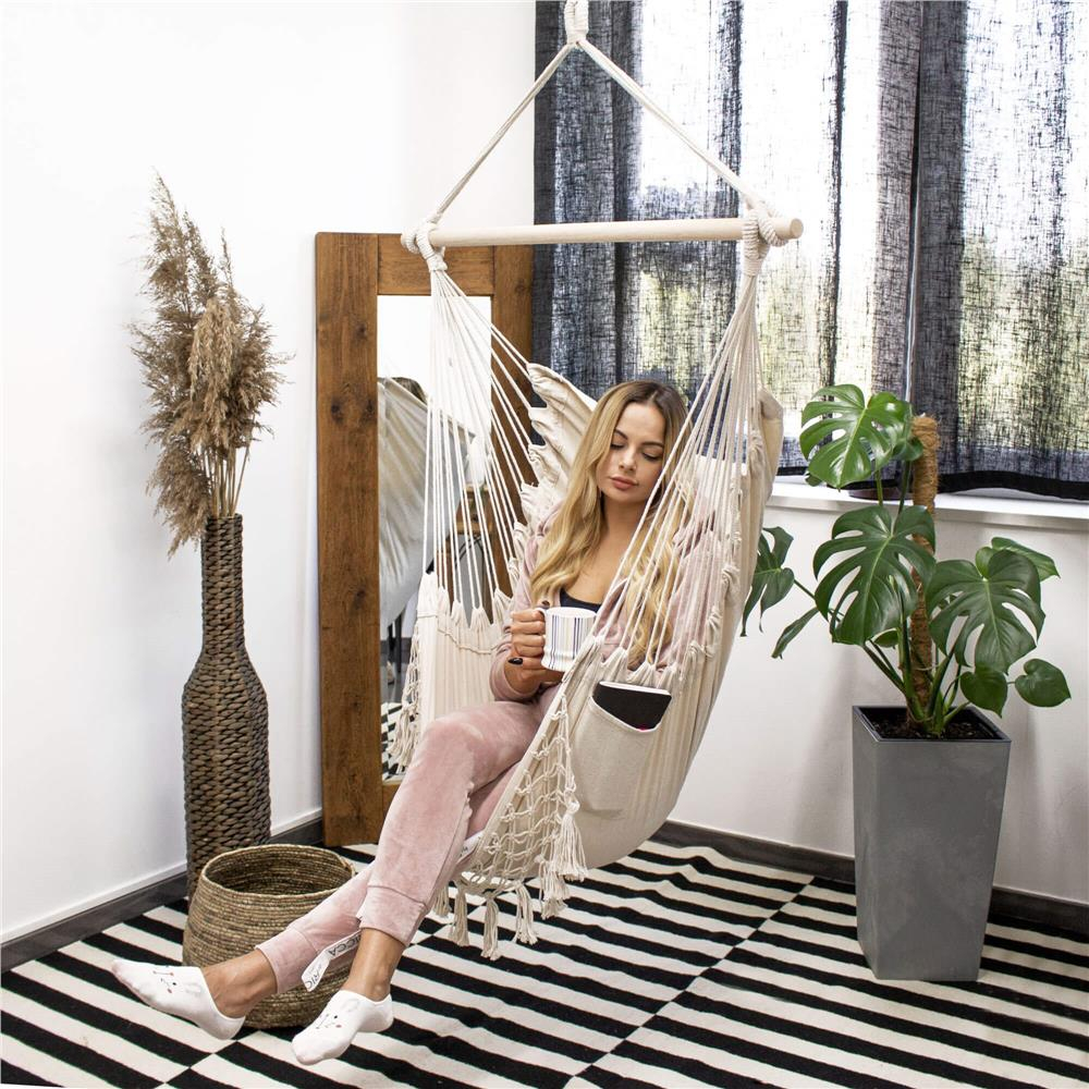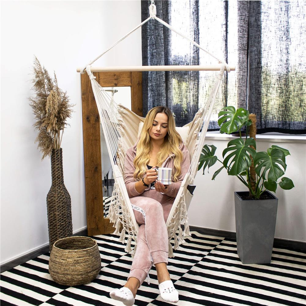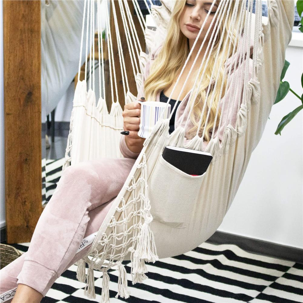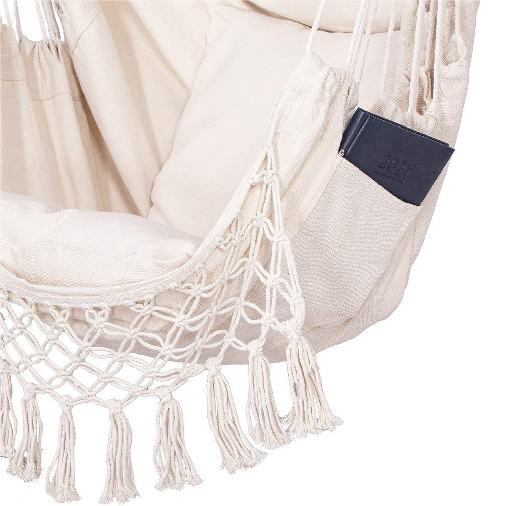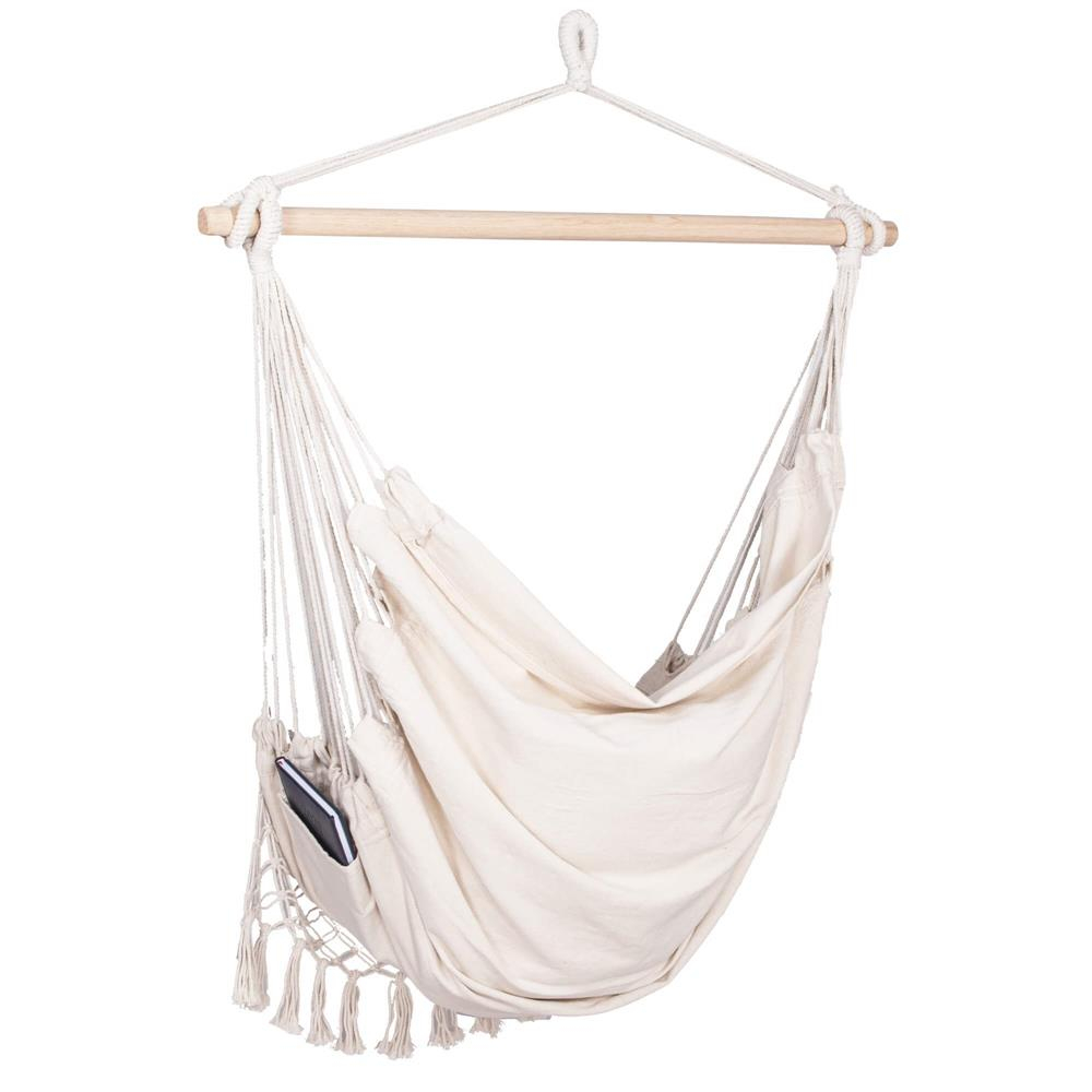 Hamac brazilian tip scaun, cu 2 perne, crem, max 150 kg, 130×100 cm