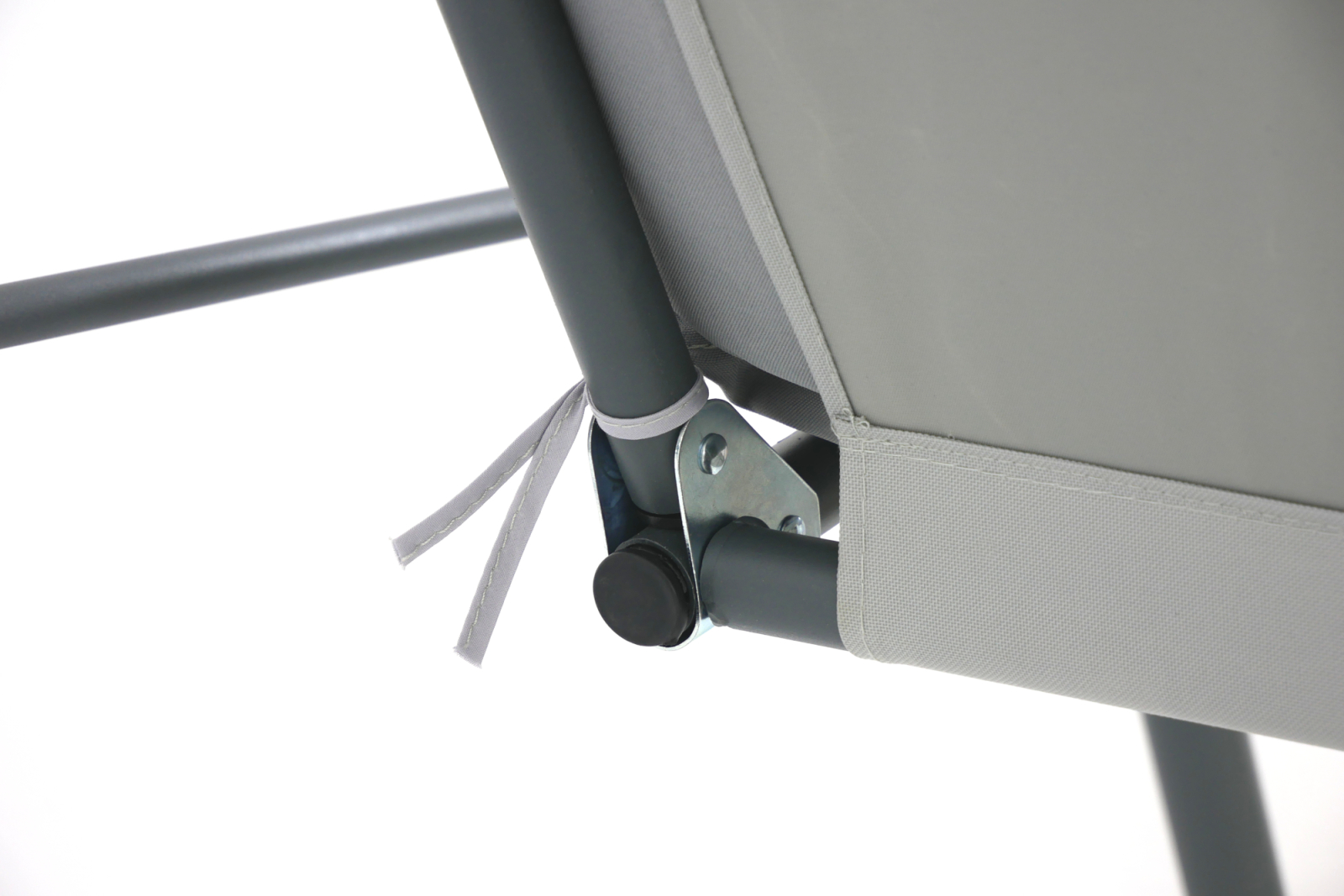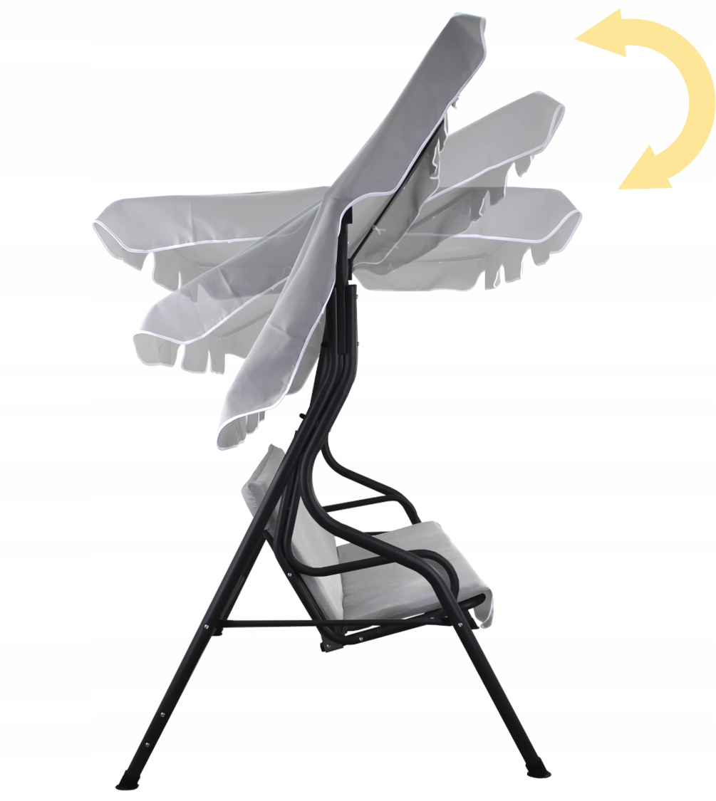 Acoperisul poate fi reglat cu mai mult de 45 de grade pentru o pozitionare optima. Este suficient sa slabiti butonul si sa inclinati viziera la unghiul dorit prin strangerea butonului. Acoperisul este realizat in mare parte din materiale tesute, ceea ce il face usor si usor de instalat si utilizat. Toate capetele elementelor metalice sunt echipate cu dopuri din plastic. Acest lucru previne ranile, astfel incat leaganul este sigur pentru copii si batrani.