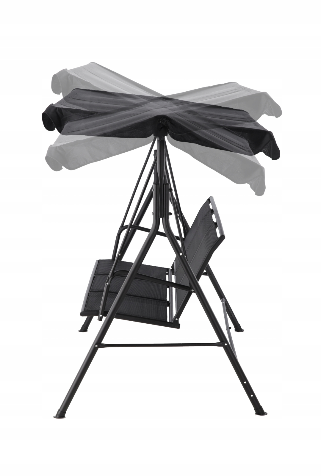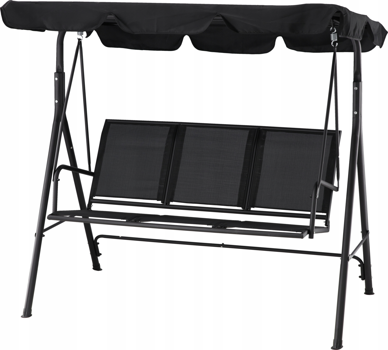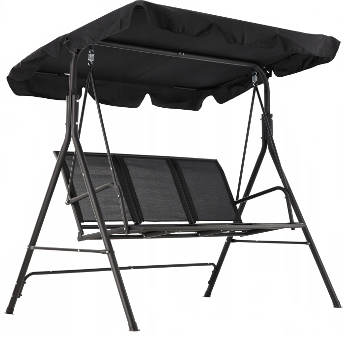 Leagan balansoar gradina 3 locuri, textilene rezistent intemperii, baldachin reglabil poliester 140g/m2, cadru otel, max 260 kg, negru