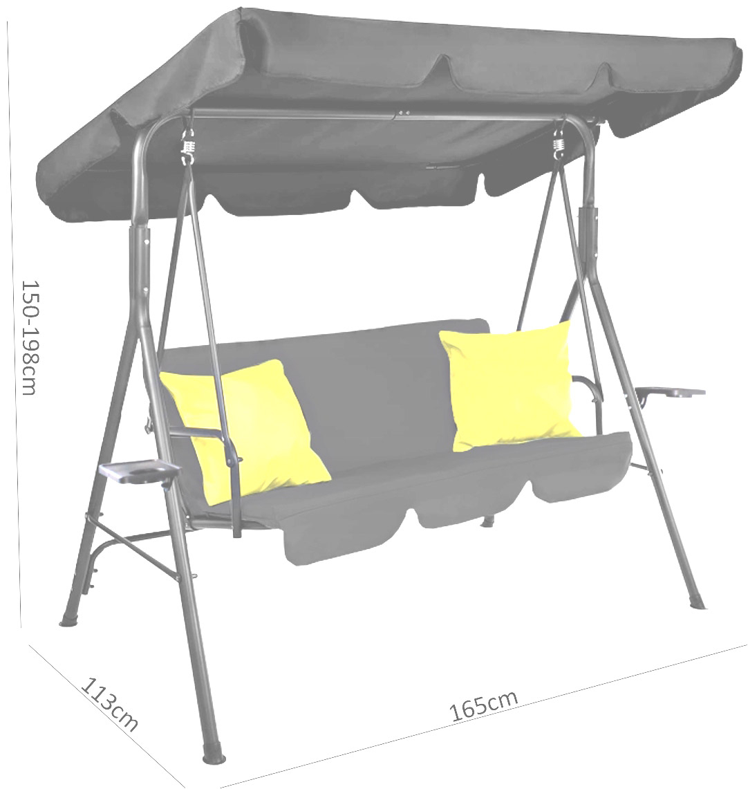 Setul include 2 perne galbene care se potrivesc perfect cu leaganul negru. Fetele de perna sunt detasabile, prinse cu fermoar!