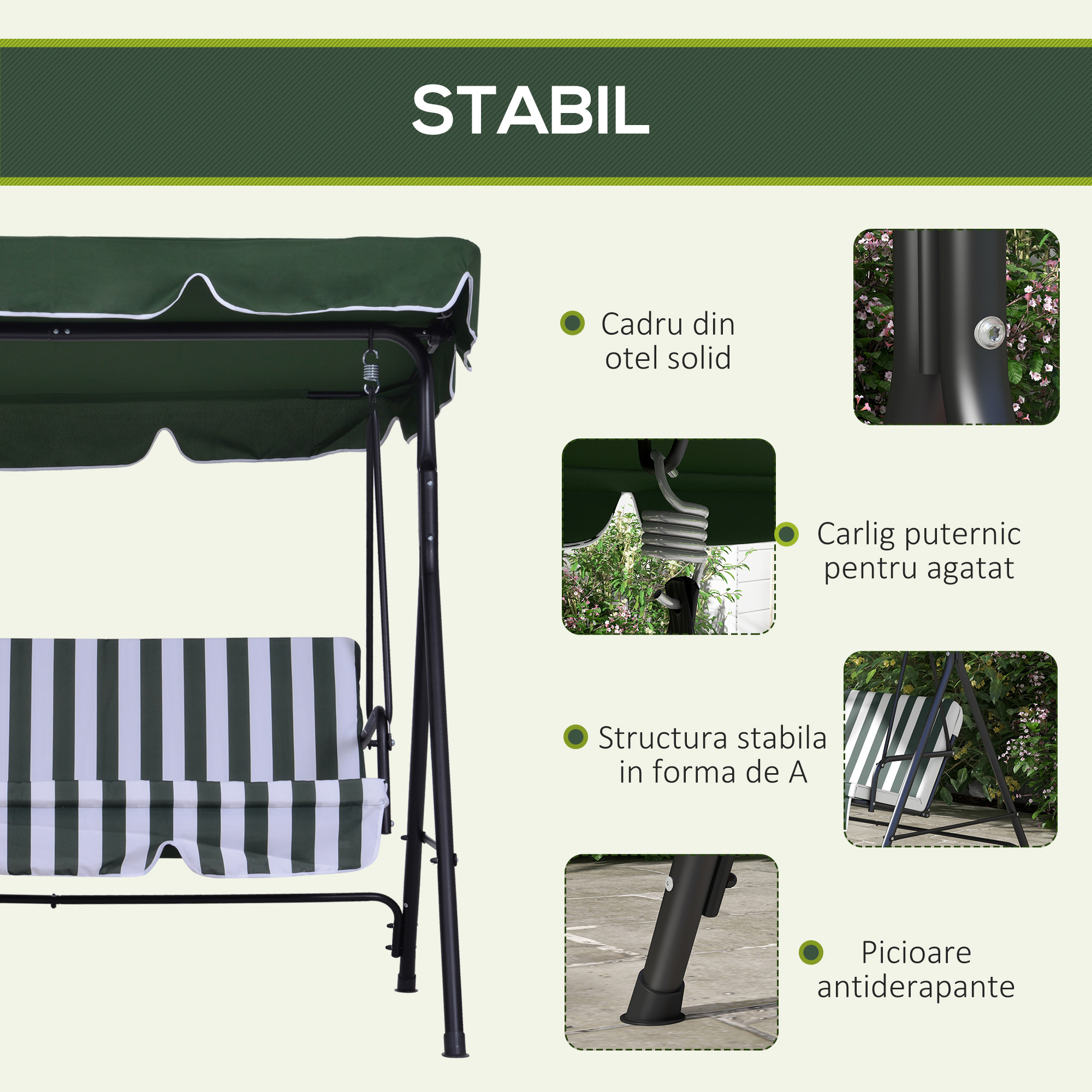 Relaxeaza-te in aer liber cu balansoarul confortabil de gradina [BRAND NAME]. Acest balansoar cu 3 locuri este realizat din otel pentru o structura solida si stabila, astfel incat sa te poti legana linistit. Balansoarul de exterior dispune de o copertina inclinabila pentru a te proteja de soare in orice moment al zilei. Nu-l rata! Amenajeaza-ti chiar acum spatiile exterioare!