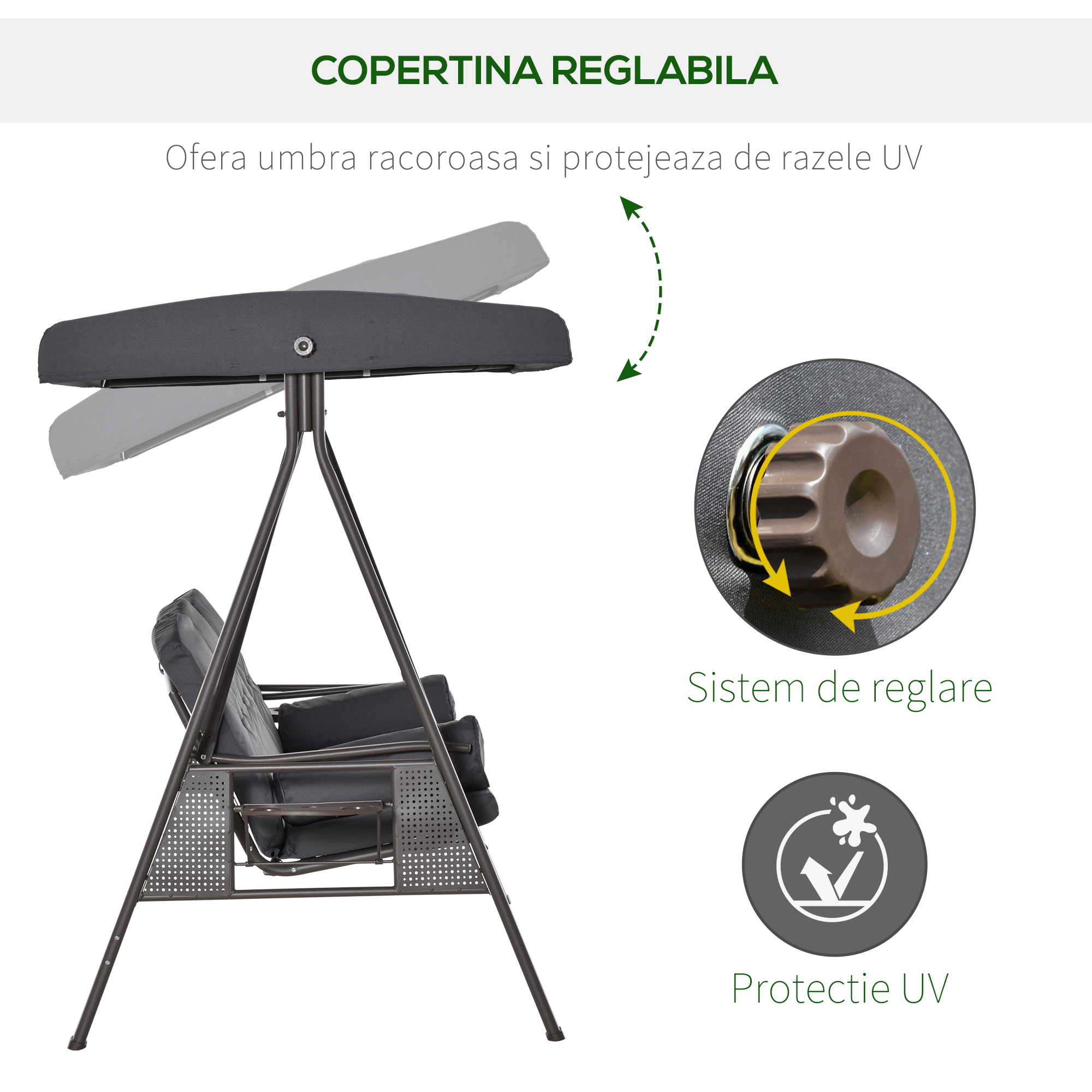 [BRAND NAME] prezinta un rafinat balansoar cu 3 locuri, cu un coperis arcuit si detalii florale pe spatarul pentru o nota de eleganta. Copertina superioara te protejeaza de soare, in timp ce practicele tavite laterale tin la indemana lucrurile esentiale. Cele trei locuri confortabile, imbogatite cu perne moi, va pot gazdui pe tine, familia si prietenii. Amplaseaza-l pe terasa, in gradina sau in curte pentru a adauga o nota de clasa spatiului tau in aer liber.