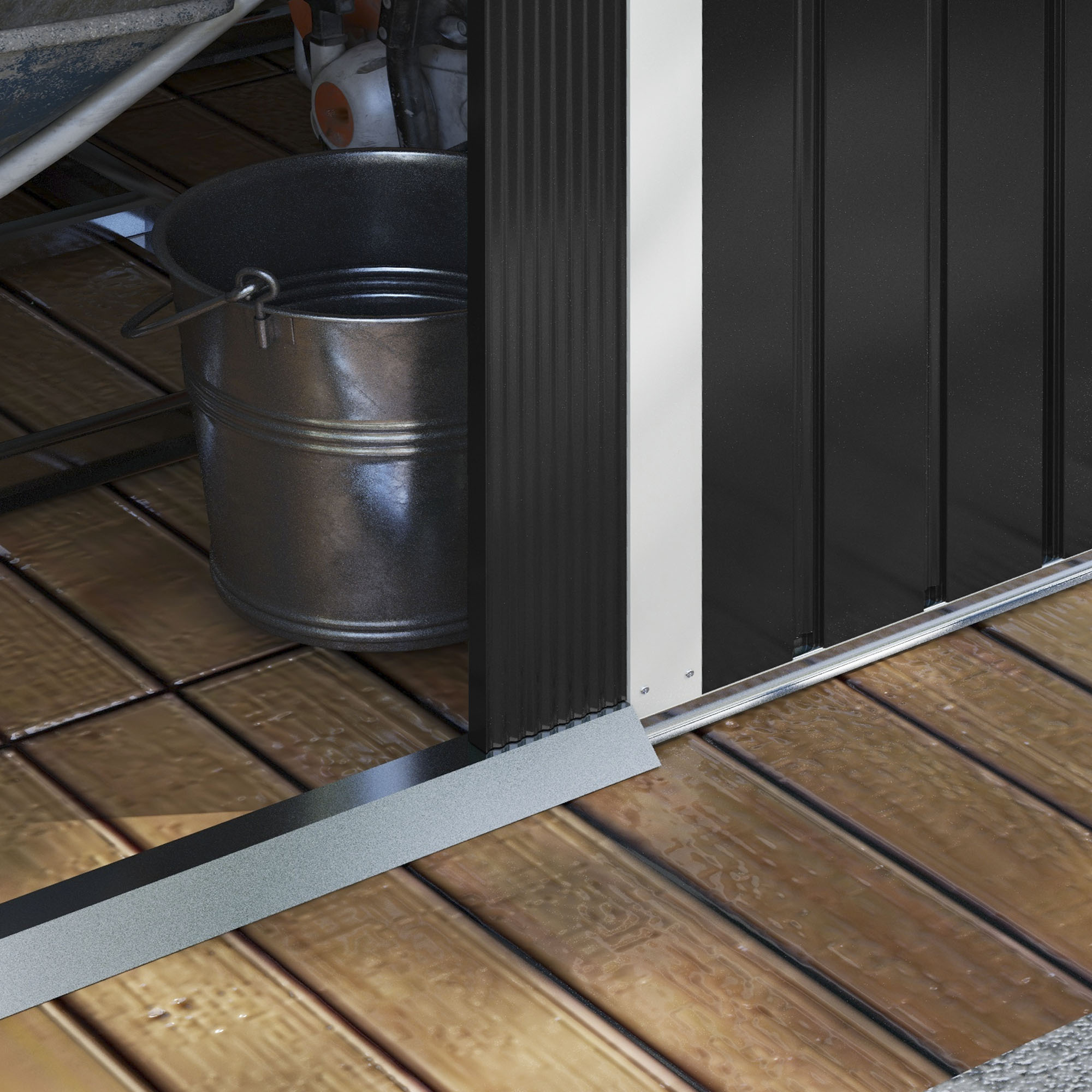 Pune in siguranta uneltele tale de gradina si mobilierul exterior in casuta de gradina [BRAND NAME]. Spatiu larg de depozitare si structura rezistenta din otel galvanizat, casuta de gradina iti permite sa depozitezi tot de ce ai nevoie. Acoperisul inclinat favorizeaza drenajul apeide ploaie. Usile glisante iti permit sa deschizi usor casuta de gradina fara sa ocupe spatiu. Ferestrele pentru aerisire iti permit sa eviti umiditatea si mucegaiul.