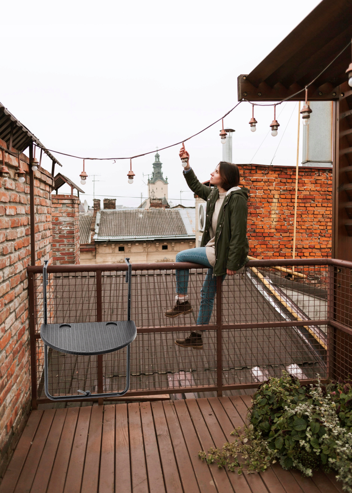 Dimineata pentru cafea si mic dejun pe balcon. Seara pentru o cina romantica in doi sau un pahar de vin la apus. La petreceri ca suprafata suplimentara de servire. Cand nu o folosesti, o pliezi pe balustrada si balconul ramane liber.