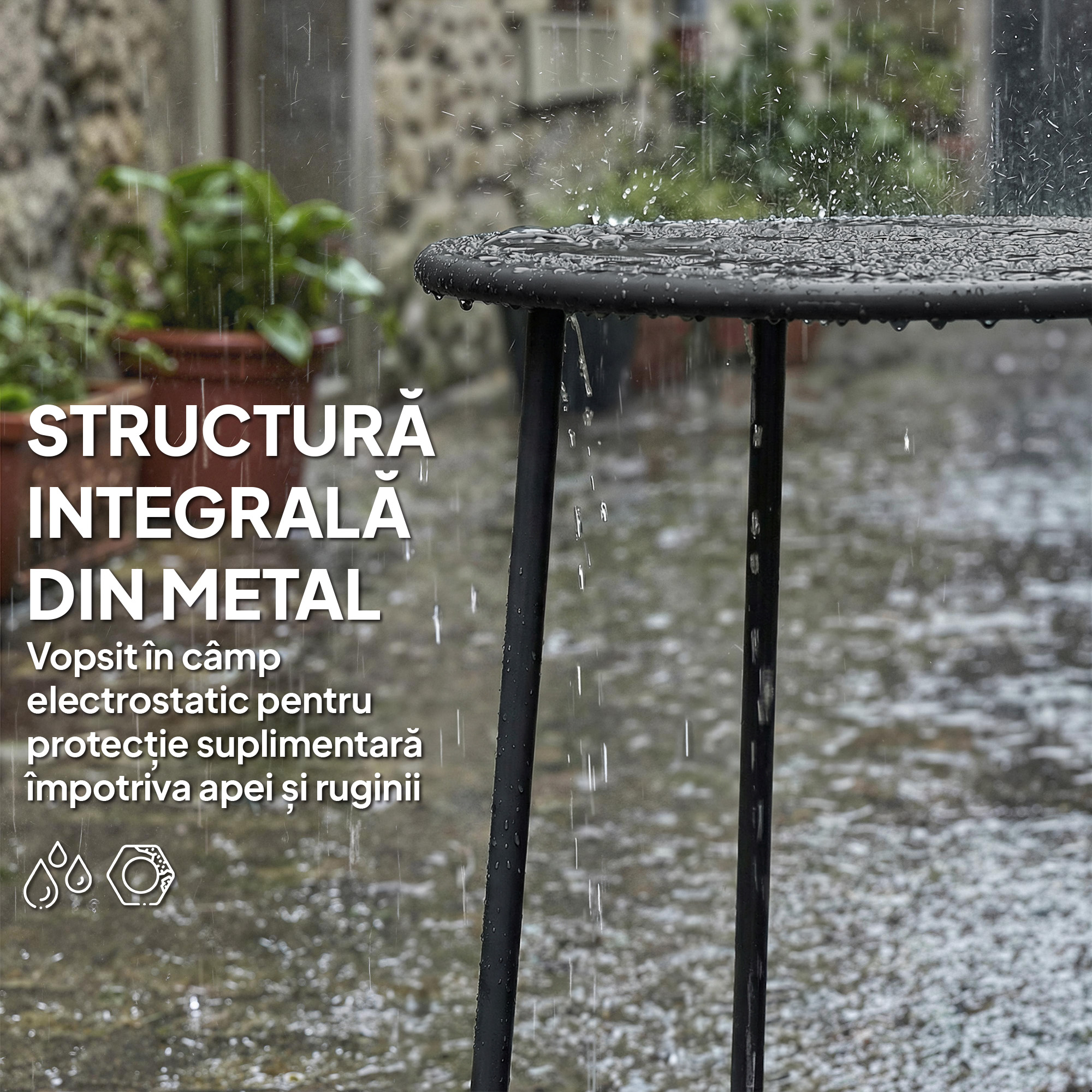 Cauti un element central pentru spatiul tau exterior? Masuta de cafea [BRAND NAME], rotunda de 50 cm, combina eleganta cu metalul rezistent la soare si ploaie. Perfecta pentru bauturi, gustari sau decoratiuni, adauga un stil minimalist terasei, ideala pentru relaxare, socializare sau momente de confort in gradina.