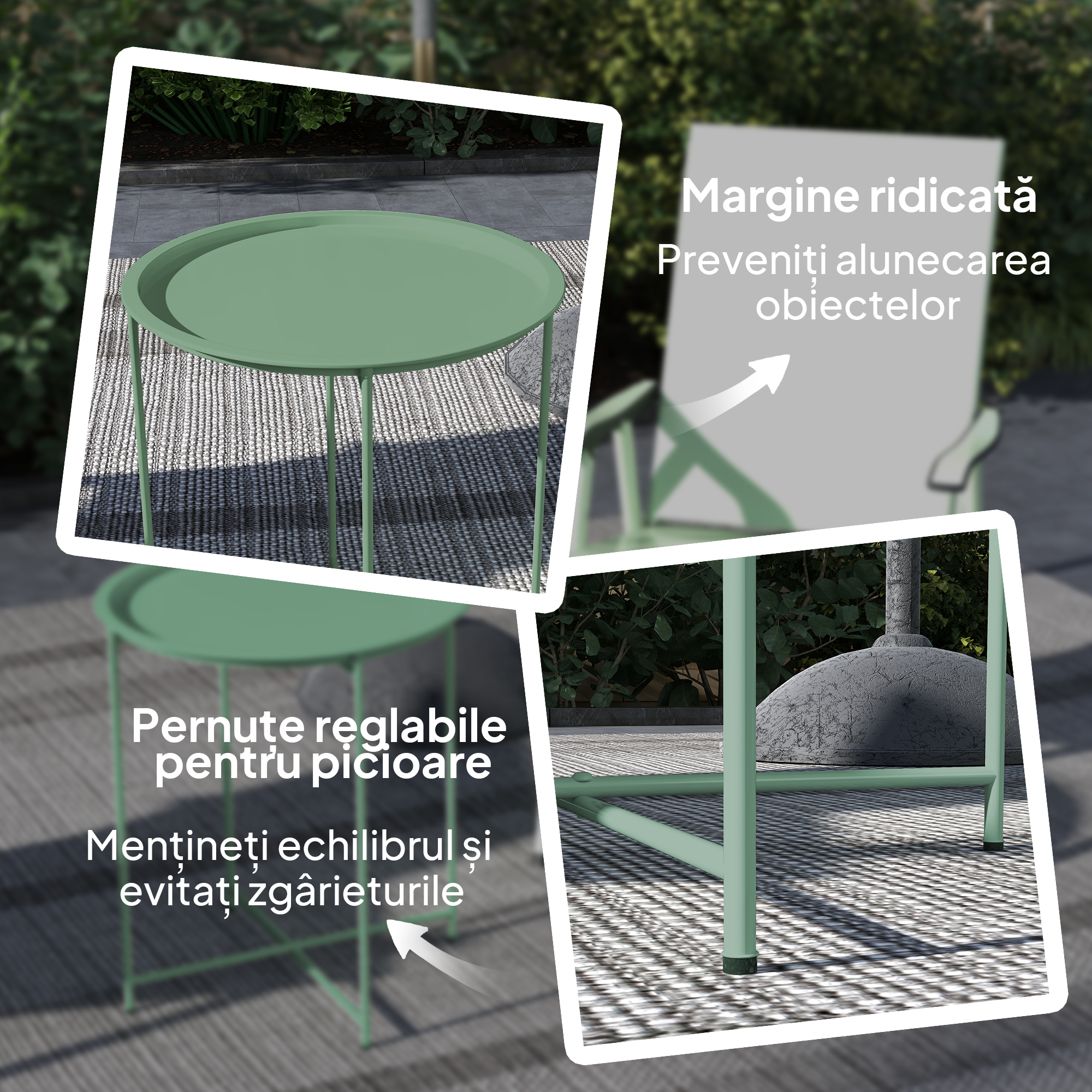 Lasati-va cuceriti de farmecul masutei de gradina [BRAND NAME], un accesoriu perfect pentru spatiul dumneavoastra exterior. Caracterizata printr-o tava detasabila si picioare pliabile, aceasta masuta de exterior este ideala pentru a fi pliata si asamblata cu usurinta. Marginea ridicata a suprafetei de sprijin va protejeaza obiectele, iar datorita structurii din otel, masuta de cafea pentru exterior este durabila. in plus, asigurati stabilitate maxima datorita picioarelor reglabile.