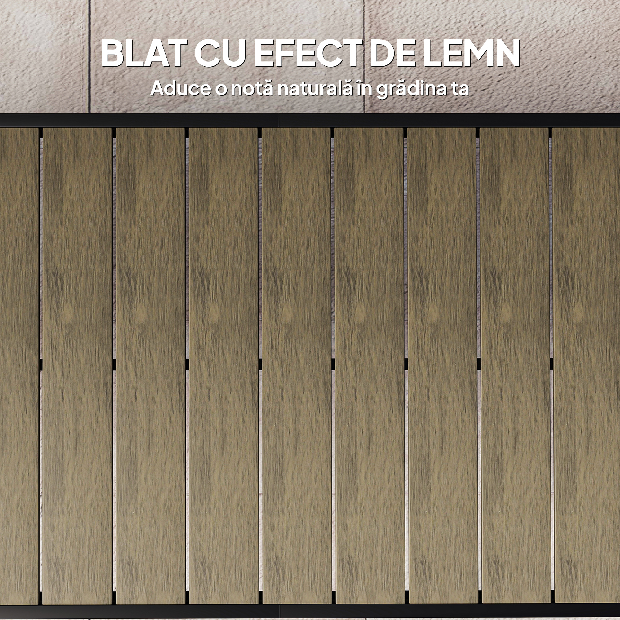 Vrei sa te relaxezi pe terasa alaturi de prieteni? Aceasta masa de gradina de la [BRAND NAME] este suportul indispensabil pentru o cina sau un aperitiv in companie! Poate gazdui pana la 8 persoane, are un cadru din aluminiu si un blat din plastic: materiale rezistente, usor de curatat si ideale pentru utilizare in aer liber.