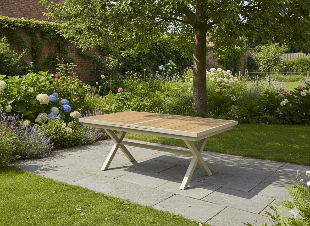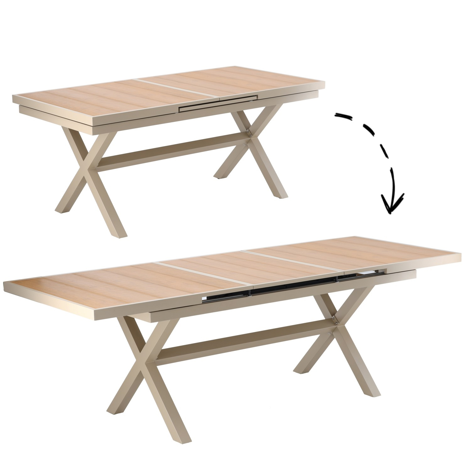 Brius Masa gradina extensibila 180-240 cm din aluminiu cu blat aspect lemn, 180-240x90x76 cm, bej