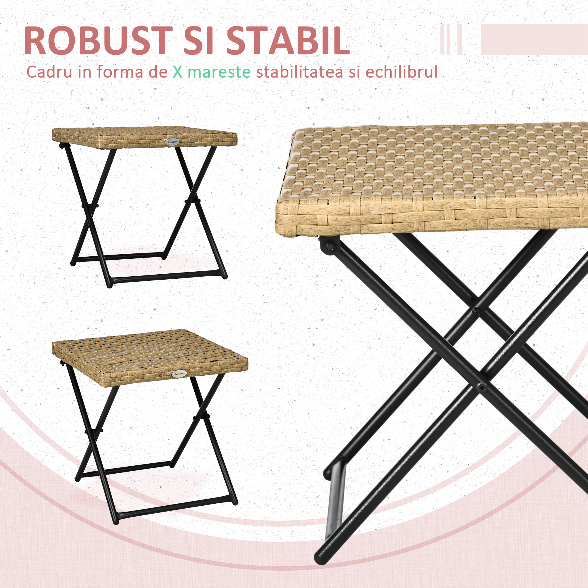 Masa plianta [BRAND NAME] este piesa de mobilier eleganta si practica care nu poate lipsi din casa si din gradina. Aceasta masuta de cafea din ratan sintetic este ideala pentru a pune bauturi, gustari si orice altceva doriti sa aveti la indemana. Cadrul din otel si ratanul PE sunt solide si asigura o viata lunga. Alegeti aceasta masa de gradina pliabila ca asistent in momentele de relaxare in aer liber!