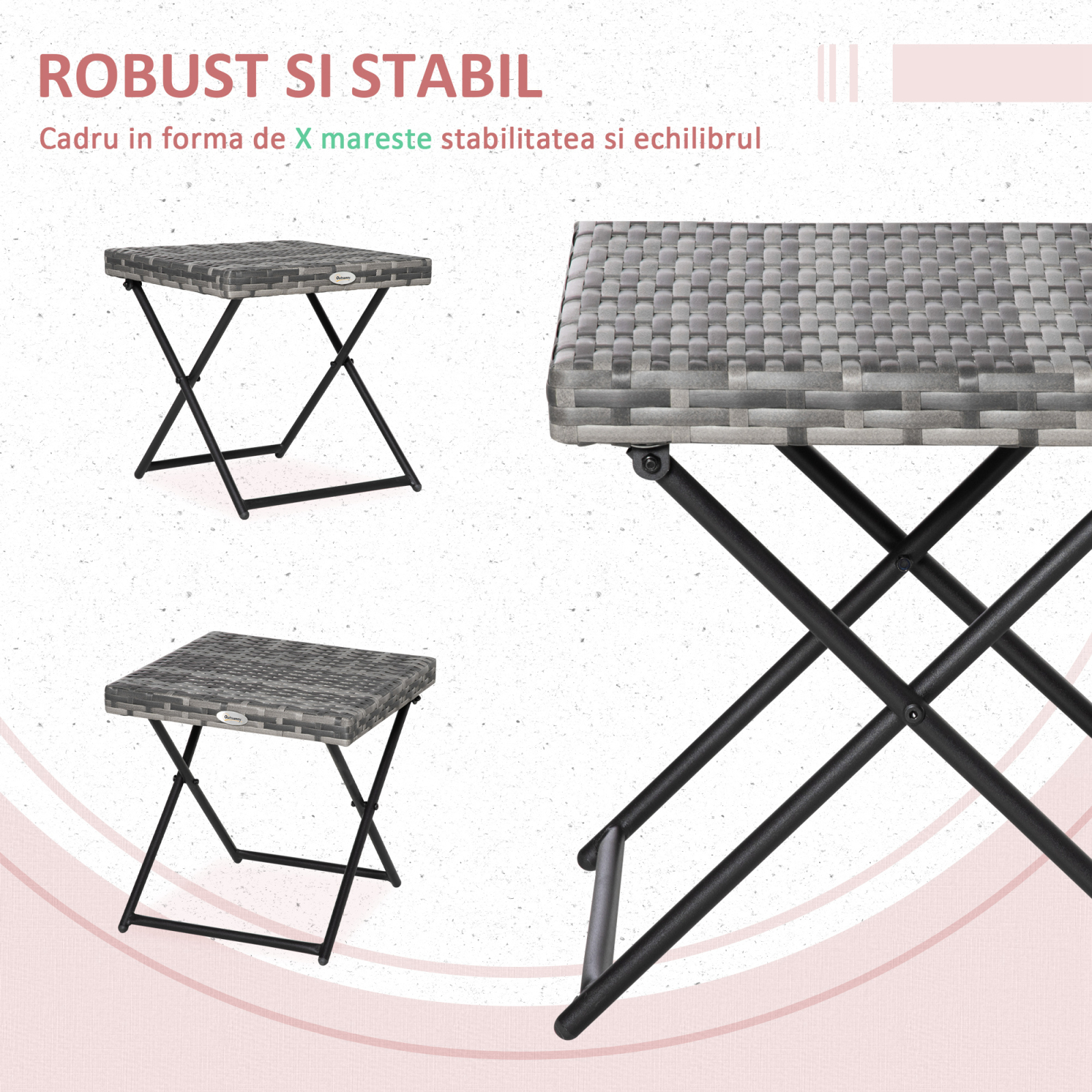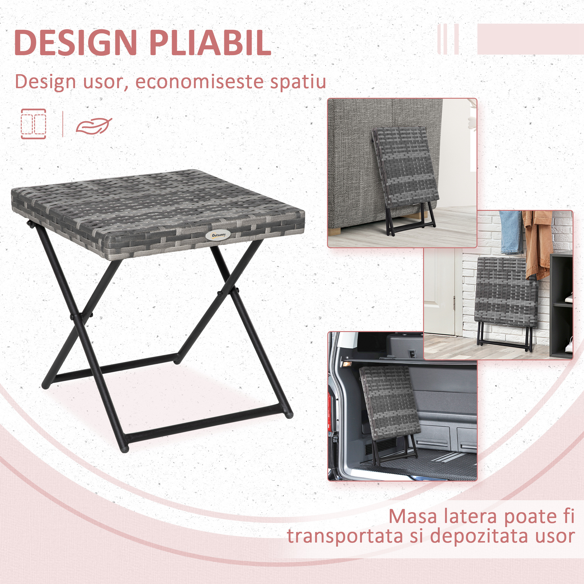 Masa plianta [BRAND NAME] este piesa de mobilier eleganta si practica care nu poate lipsi din casa si din gradina. Aceasta masuta de cafea din ratan sintetic este ideala pentru a pune bauturi, gustari si orice altceva doriti sa aveti la indemana. Cadrul din otel si ratanul PE sunt solide si asigura o viata lunga. Alegeti aceasta masa de gradina pliabila ca asistent in momentele de relaxare in aer liber!