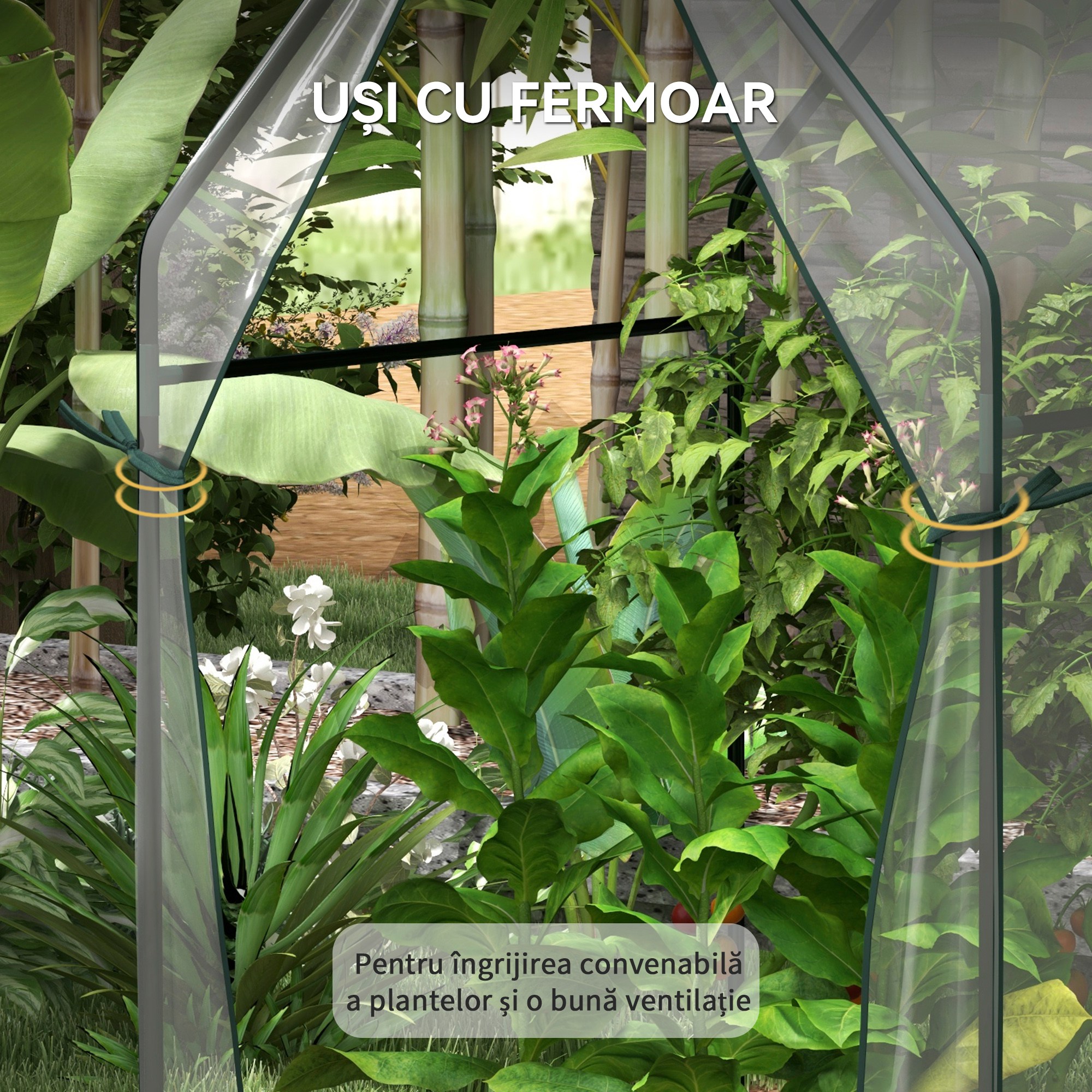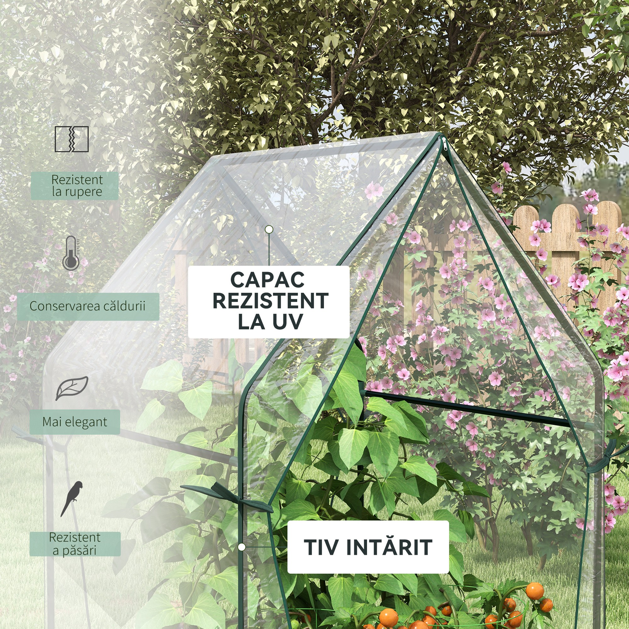 Nu va mai faceti griji cu privire la inghetarea plantelor si florilor pastrate cu grija! Mini sera [BRAND NAME] ofera o solutie compacta, dar spatioasa pentru gradinarii de toate nivelurile. Ocupand mai putin de un metru patrat de spatiu la sol, ofera suficient spatiu vertical pentru a creste plantele cataratoare precum trandafirii, castravetii si rosiile. Capacul din plastic rezistent la UV cu usi cu fermoar creeaza o temperatura si umiditate dorite pentru ca plantele sa creasca. Imbratisati arta horticulturii cu sera mica [BRAND NAME].