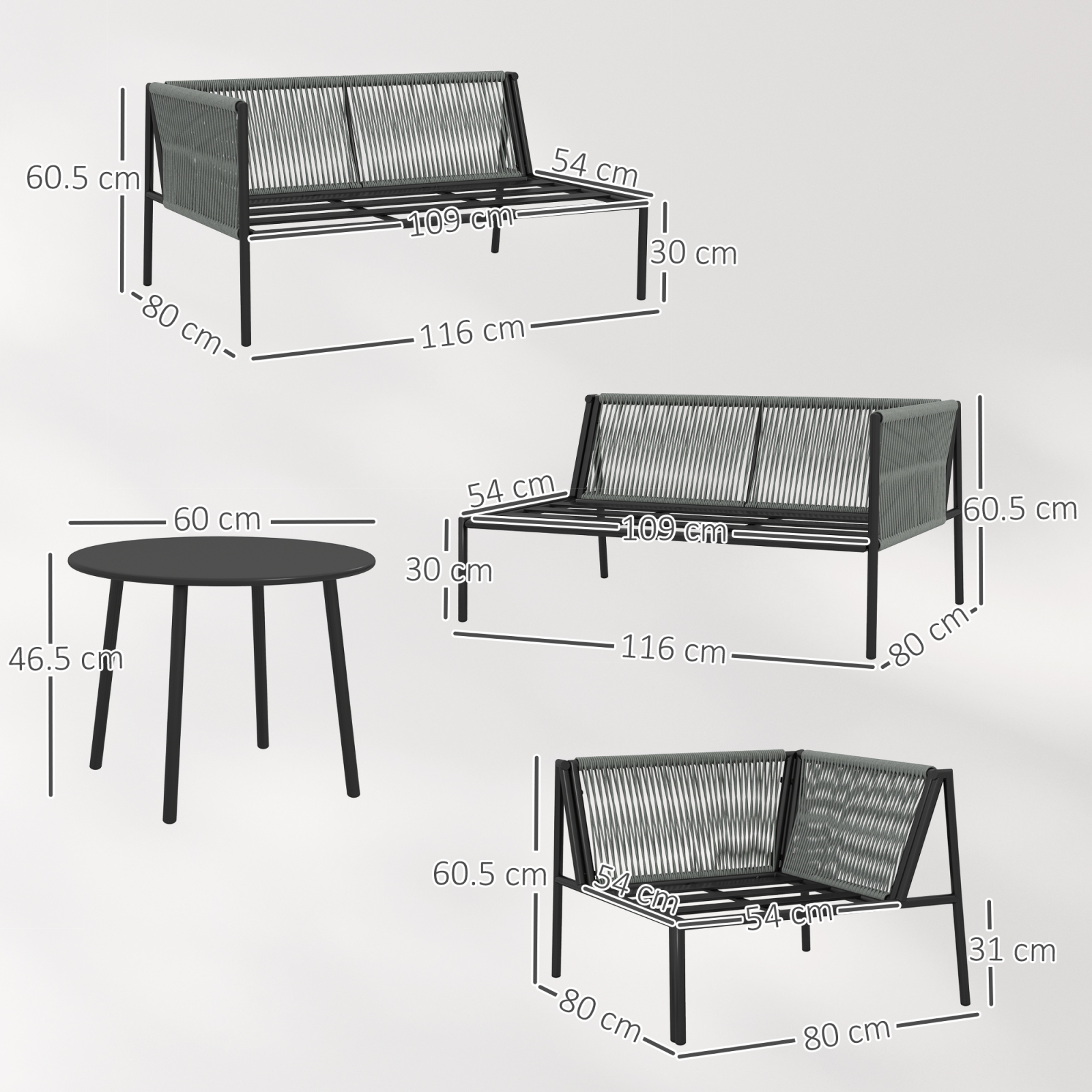 improspateaza-ti spatiul exterior cu setul de mobilier de gradina [BRAND NAME]. Format din patru piese, setul cu canapea de colt si masuta rotunda este realizat din ratan rezistent la UV si structura solida din otel. Dotat cu perne rezistente la apa pentru un confort sporit, acest set din ratan este perfect pentru a-ti completa mobilierul de exterior si a te bucura de relaxare in aer liber.