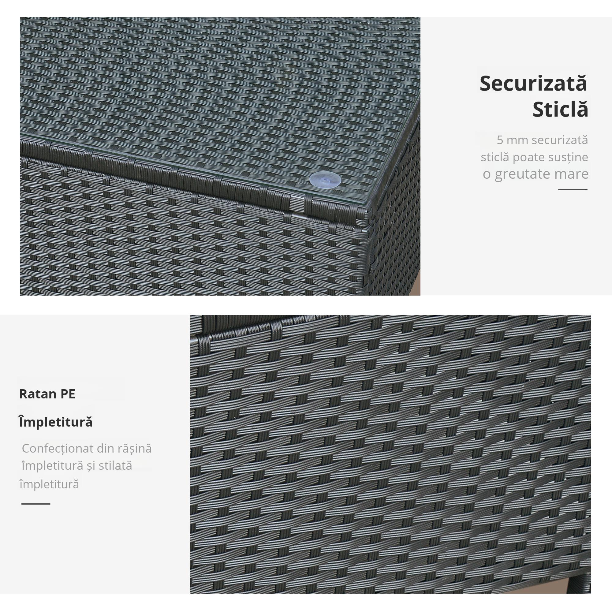 [BRAND NAME] ofera o masuta de cafea pentru exterior cu un design foarte lat si o suprafata ce poate fi curatata prin stergere. Este fabricata din sticla securizata, oferind un blat elegant care nu va va lasa sa plangeti dupa laptele varsat. Asadar, luati loc si bucurati-va de o masa placuta alaturi de un prieten. O terasa mai completa va permite mai multe optiuni pentru divertisment. Masa noastra se potriveste perfect cu oricare dintre celelalte piese de mobilier din ratan PE. Toata mobila noastra din ratan PE a fost tesuta manual pentru un aspect clasic de rachita, dar si un design mai sigur pentru apa.